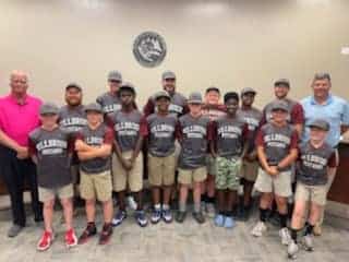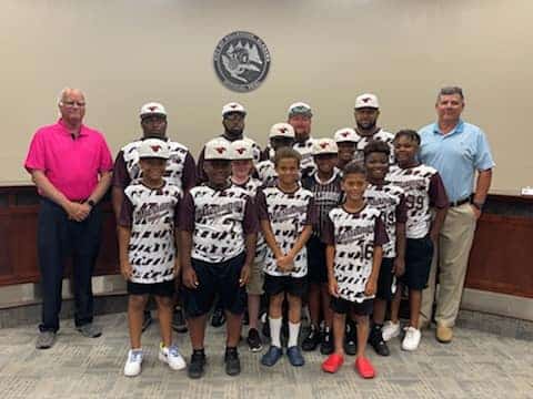 The two teams gathered for individual photos and thanked the city for the help. The teams are the city league 12 and Under and 9 and 10 year-olds.