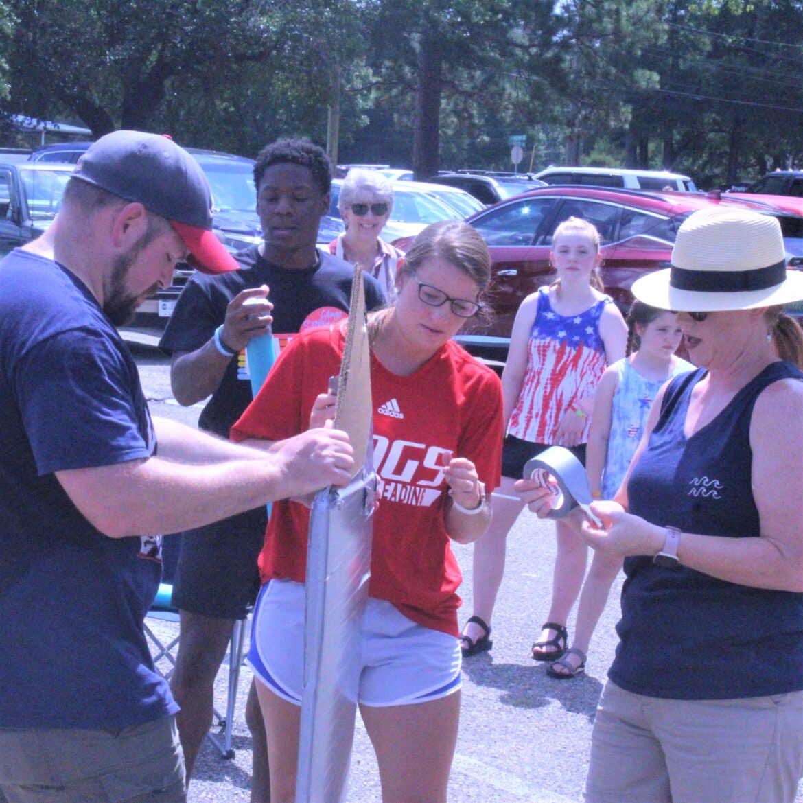 Teams from all over came together in the heat Monday to put together cardboard, duct tape and flotation devises and compete against each other with hundreds of others cheering them on.