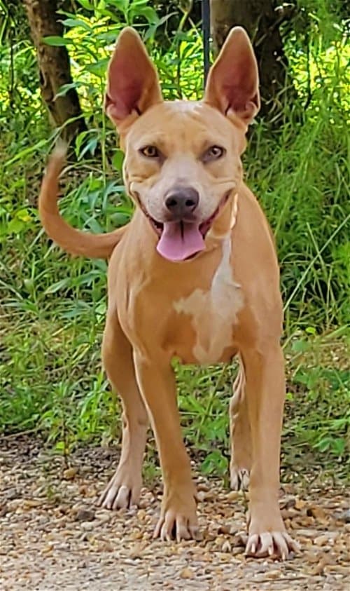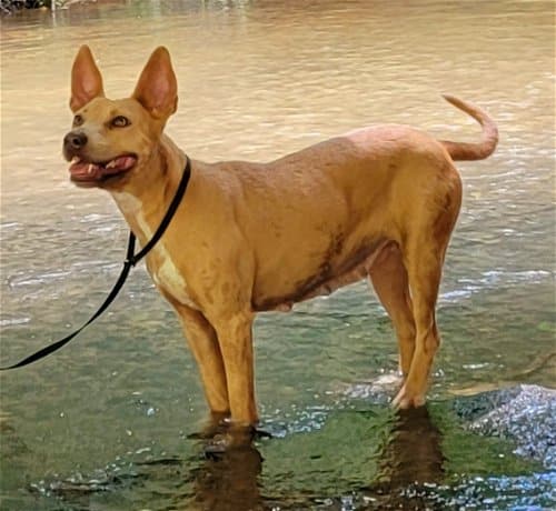 Jade looks to be about one year old, about 35 lbs, came to us as a stray never reclaimed. She is very sweet and friendly, likes to go for walks, great with other dogs & cats. Could be a great hiking and camping buddy.