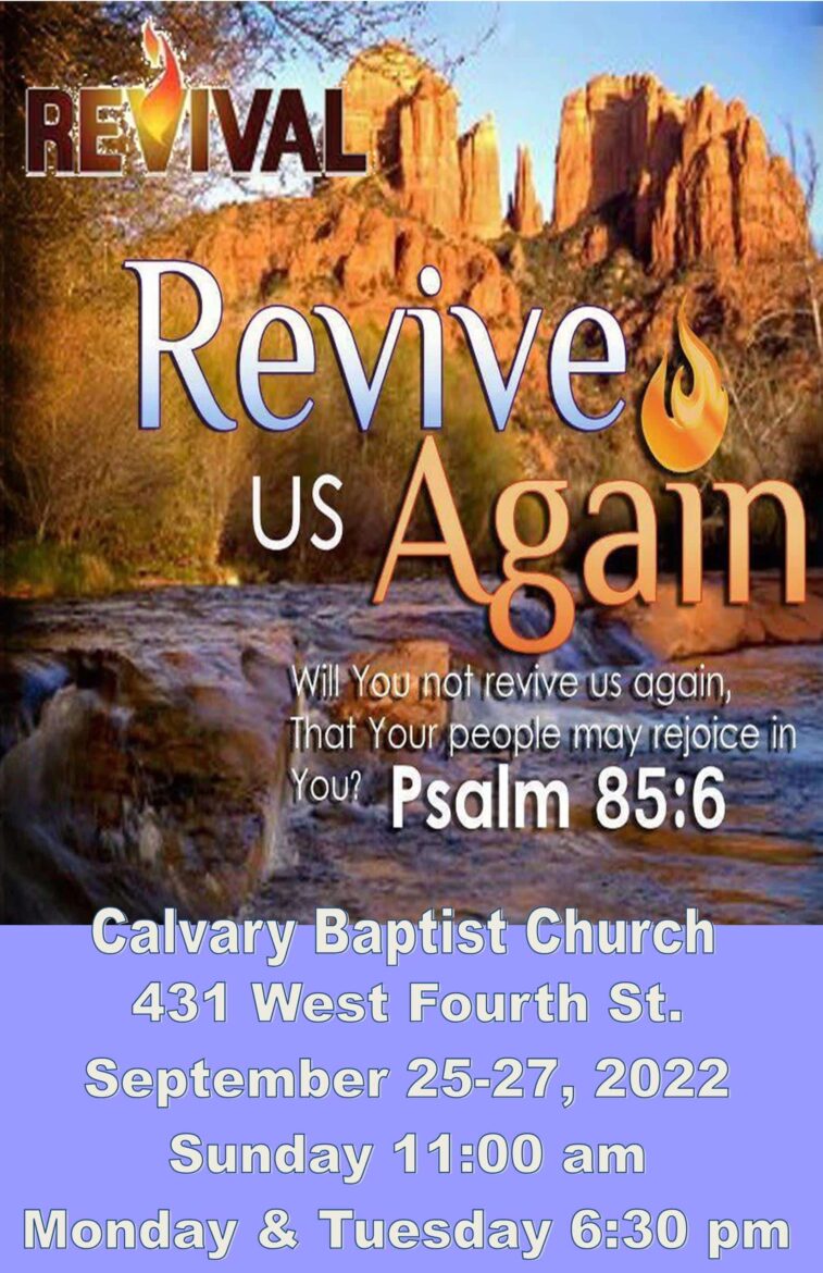 Calvary Baptist Church of Prattville is holding a revival Sept. 25-27 entitled “Revive Us Again.”