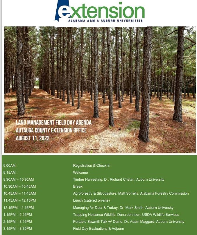 Land Management Field Day is Aug.11 at Autauga County Extension Office
