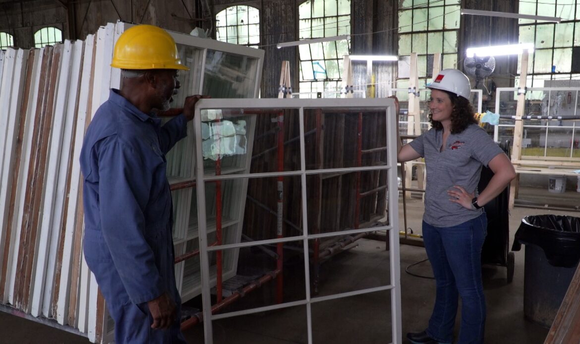 CUTLINE: Old House Specialists Site Superintendent KC Catledge speaks with Simply Southern TV co-host Mary Wilson