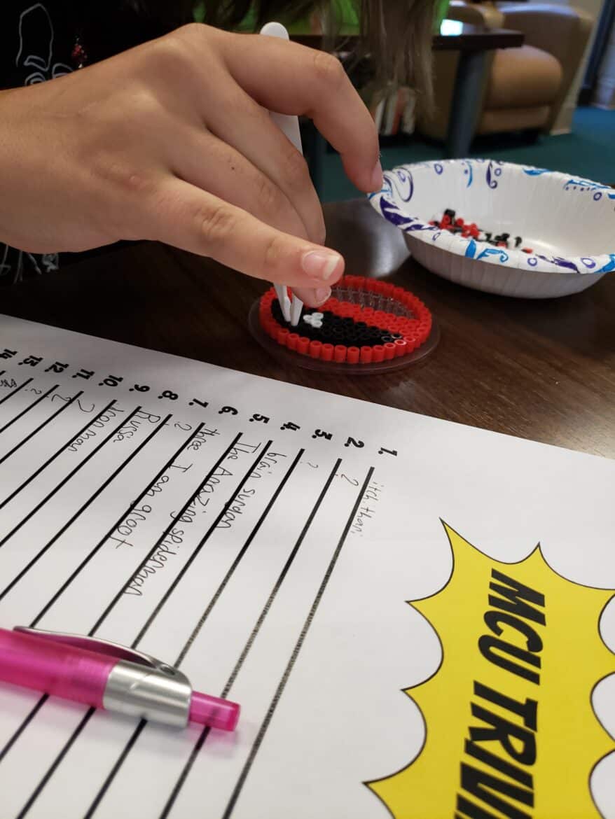 Baylee Smith, Children’s and Youth Services Librarian, told us that “We had a smaller crowd than we had hoped, but it was still fun all the same. We made Marvel Keychains out of perler beads and played MCU Trivia.” The group also discussed some of their favorite movies from the MCU and where they thought Phase 5 was headed. For us Marvel lovers, it was a great discussion, as only Marvel fans can have. The winner of the MCU trivia game won a Funko Pop of Might Thor from Thor: Love and Thunder. The winner also had on a great costume as they cosplayed as Spider-Man Noir.