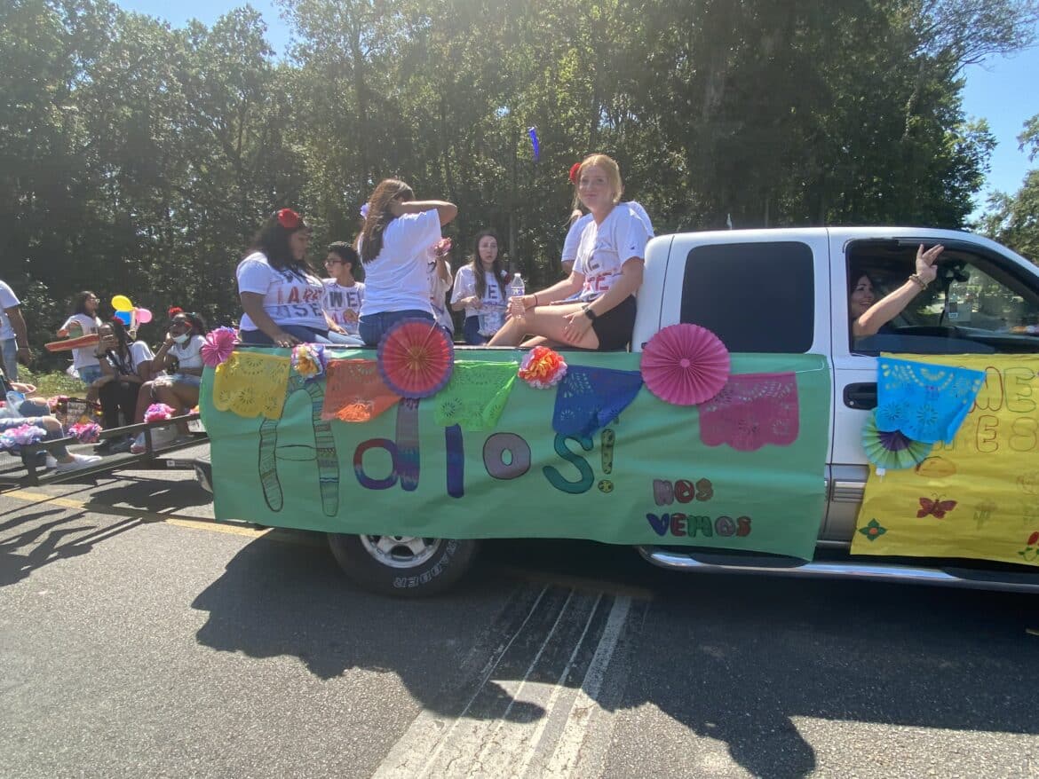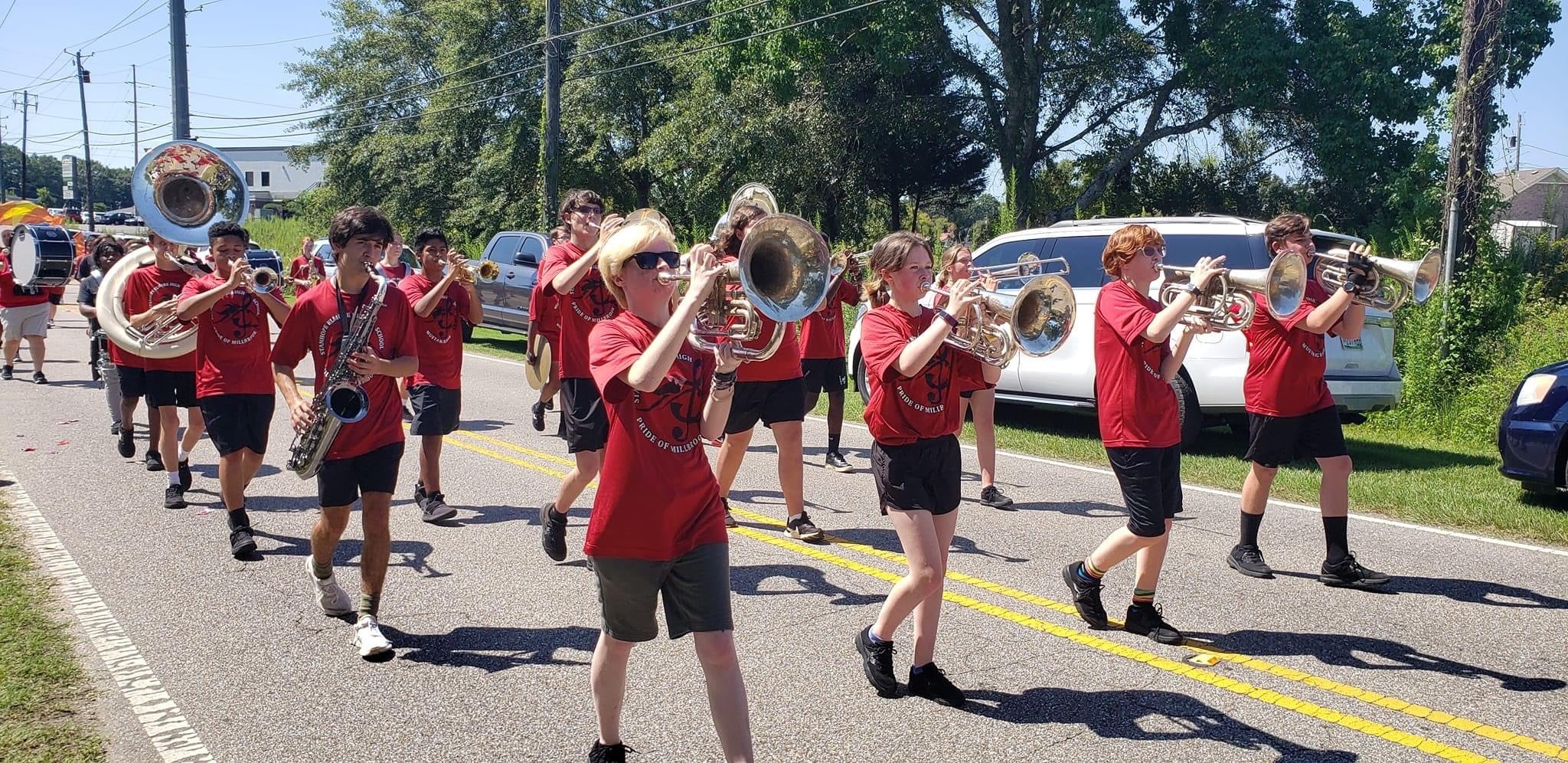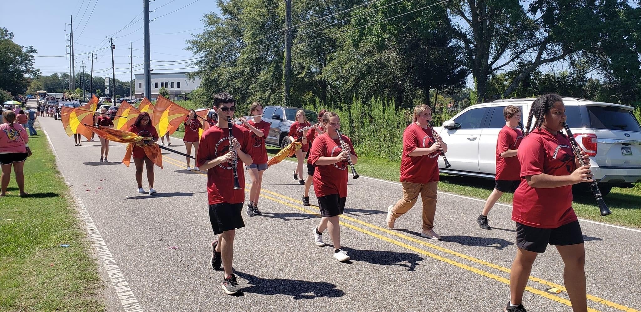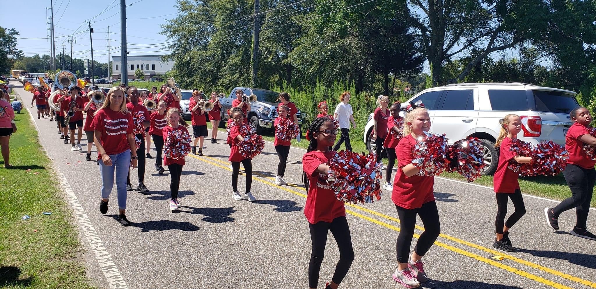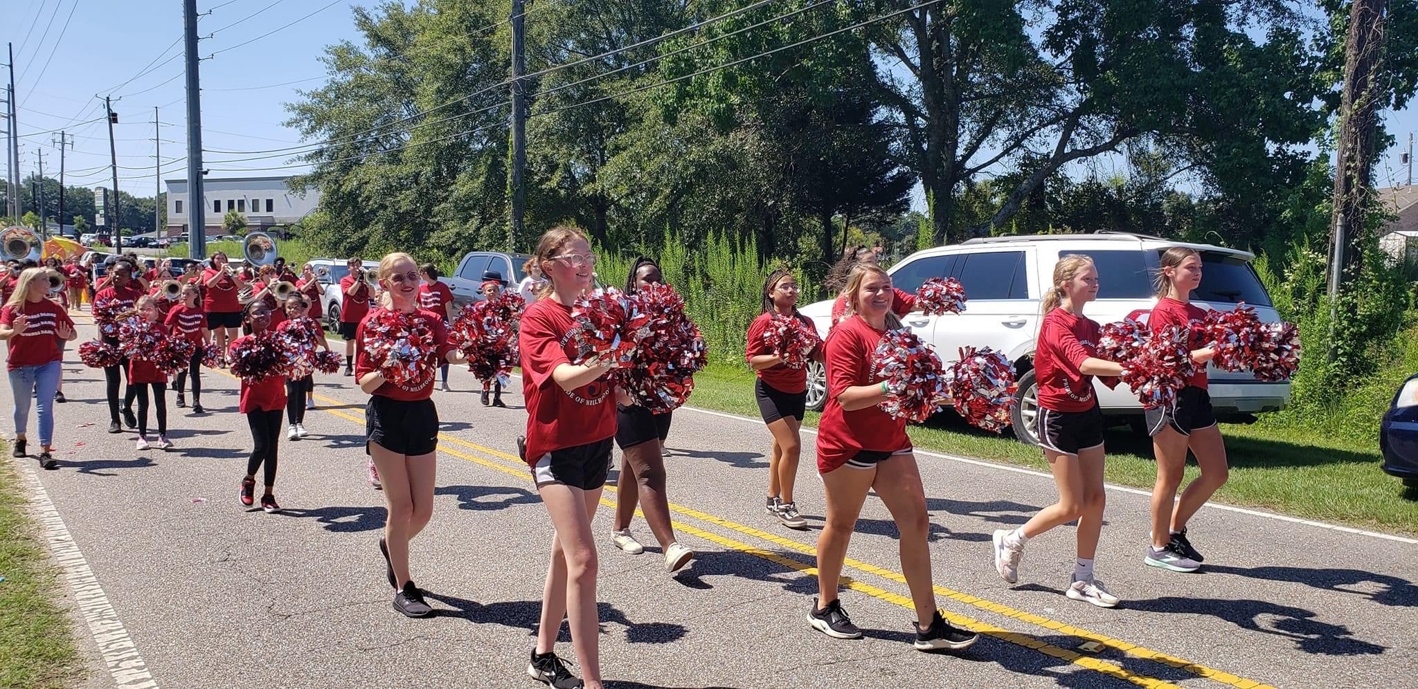 The homecoming court, cheerleaders, band members, ROTC, dance team, football players and different clubs and organizations march from the school, to Main Street, turning onto Chapman Road and paraded by Millbrook Middle School.