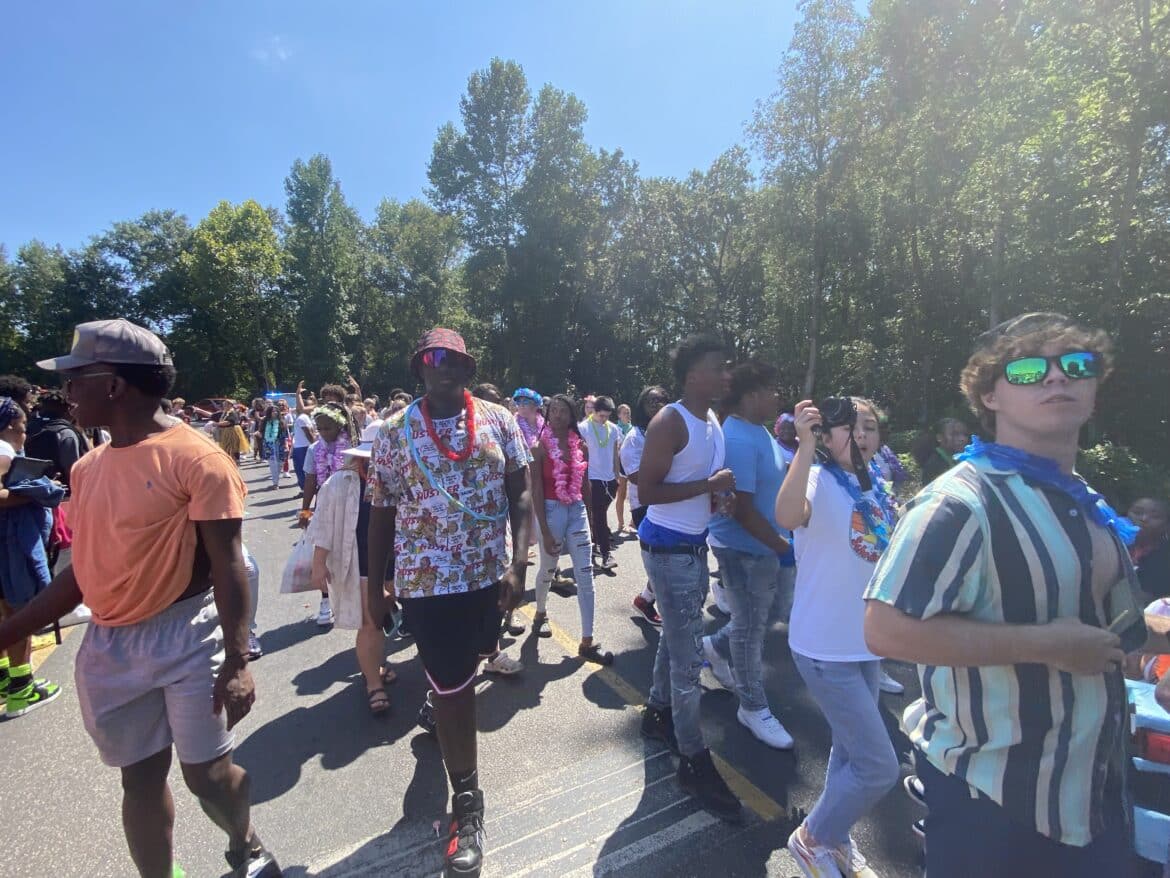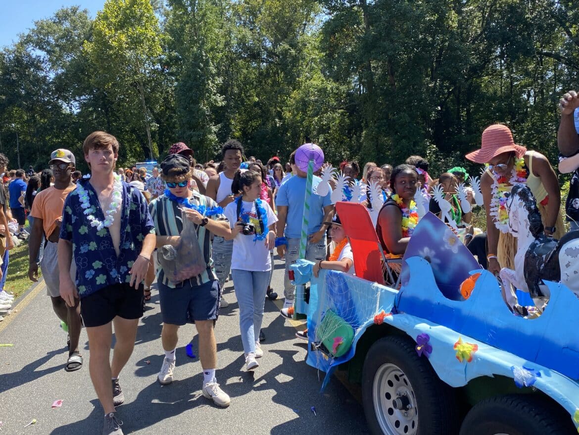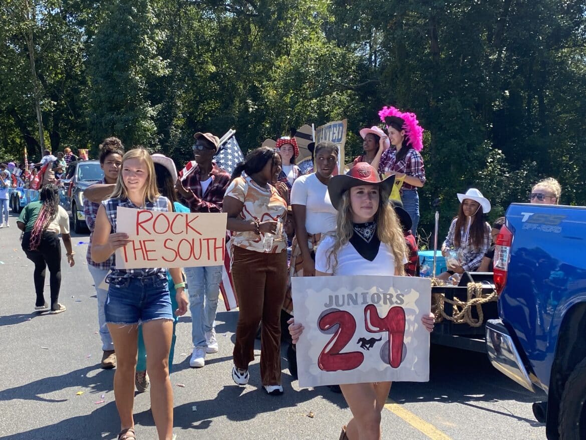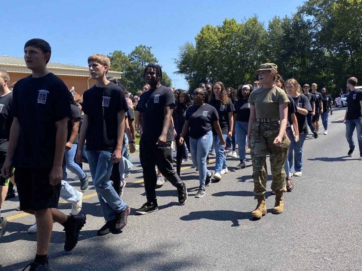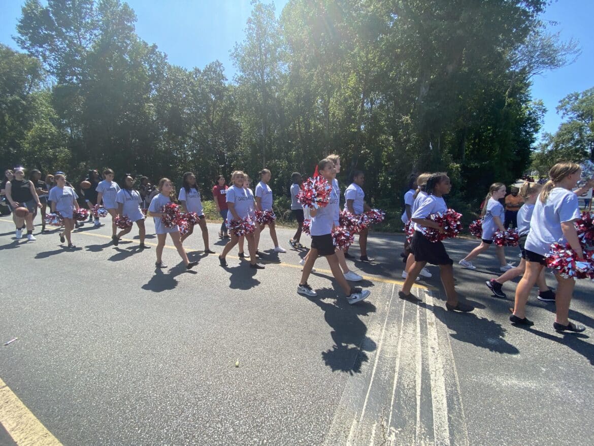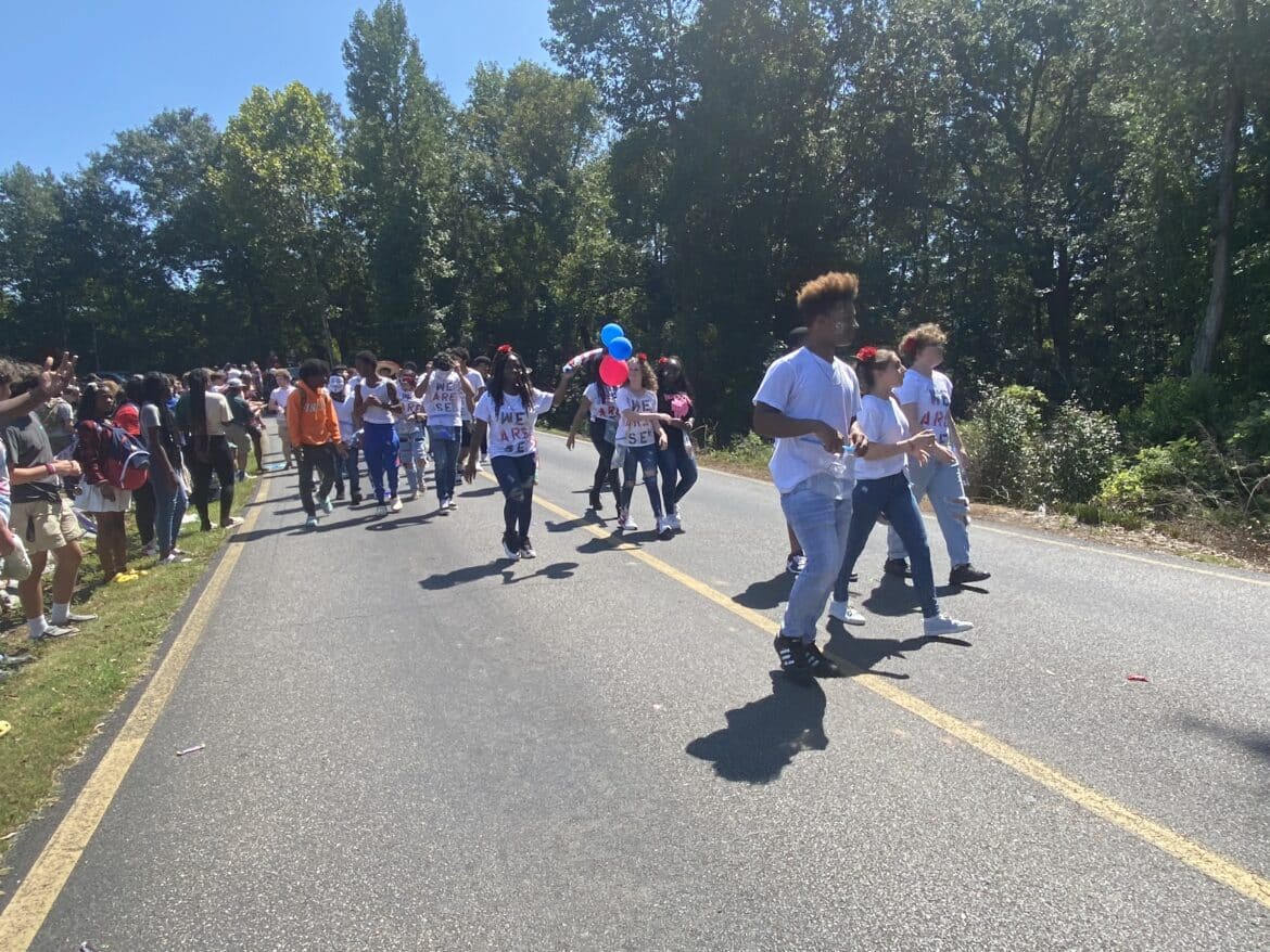 The homecoming court, cheerleaders, band members, ROTC, dance team, football players and different clubs and organizations march from the school, to Main Street, turning onto Chapman Road and paraded by Millbrook Middle School.