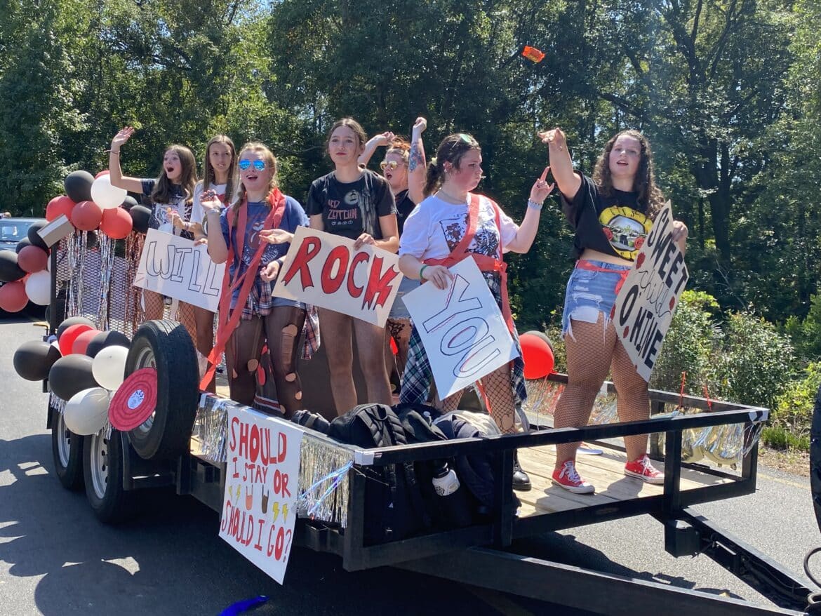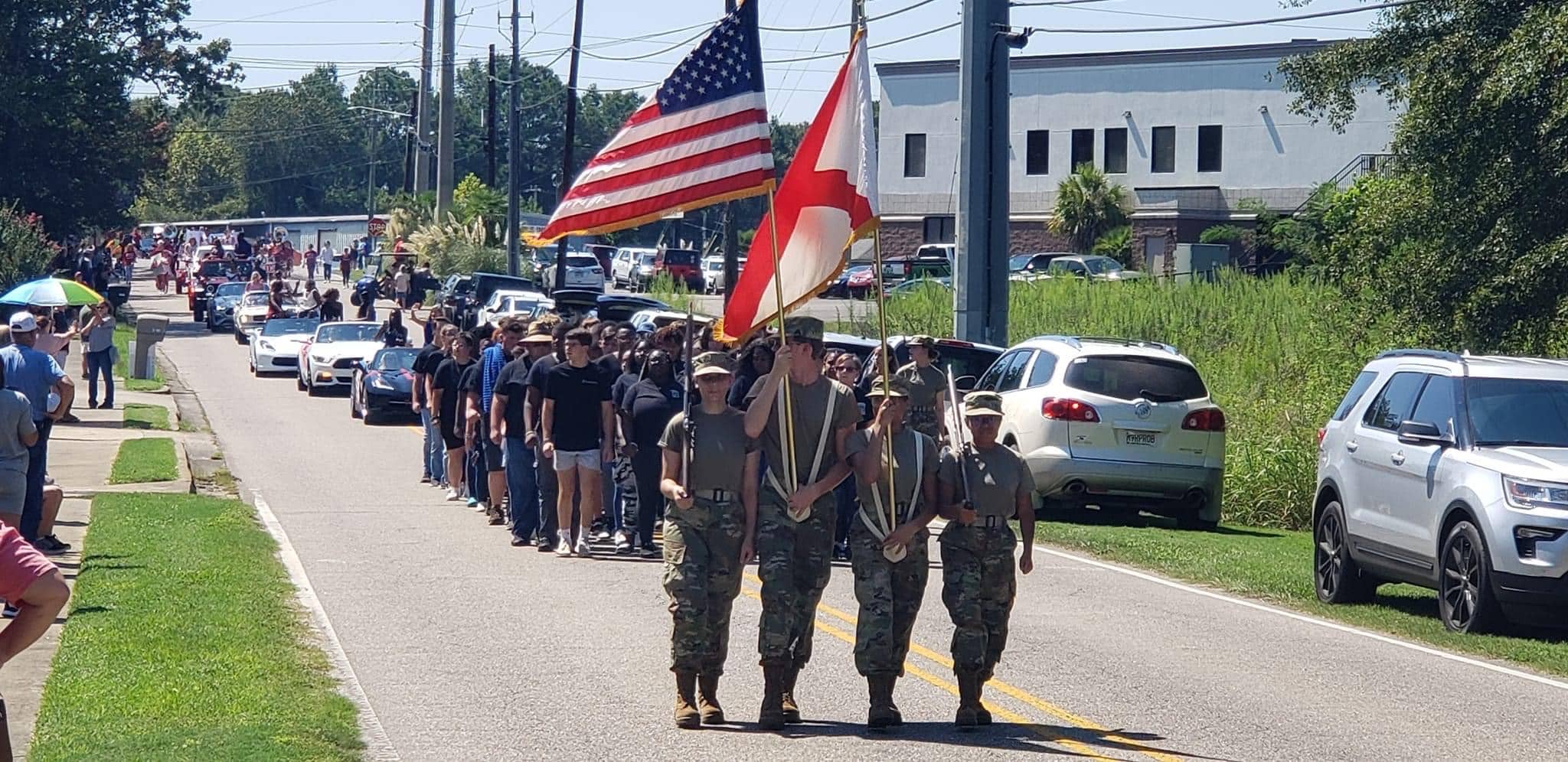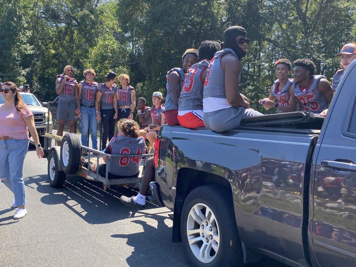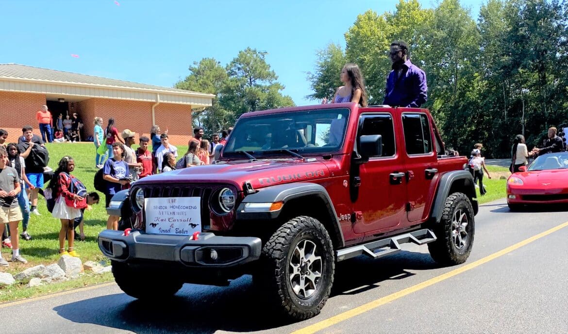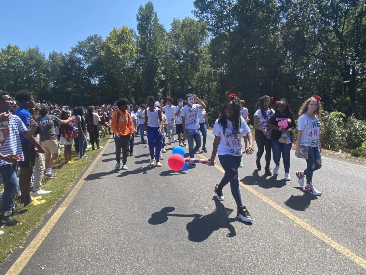 The homecoming court, cheerleaders, band members, ROTC, dance team, football players and different clubs and organizations march from the school, to Main Street, turning onto Chapman Road and paraded by Millbrook Middle School.