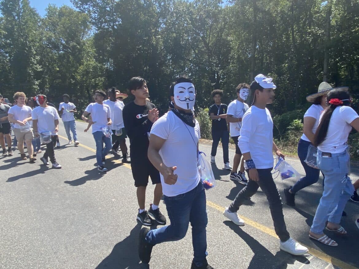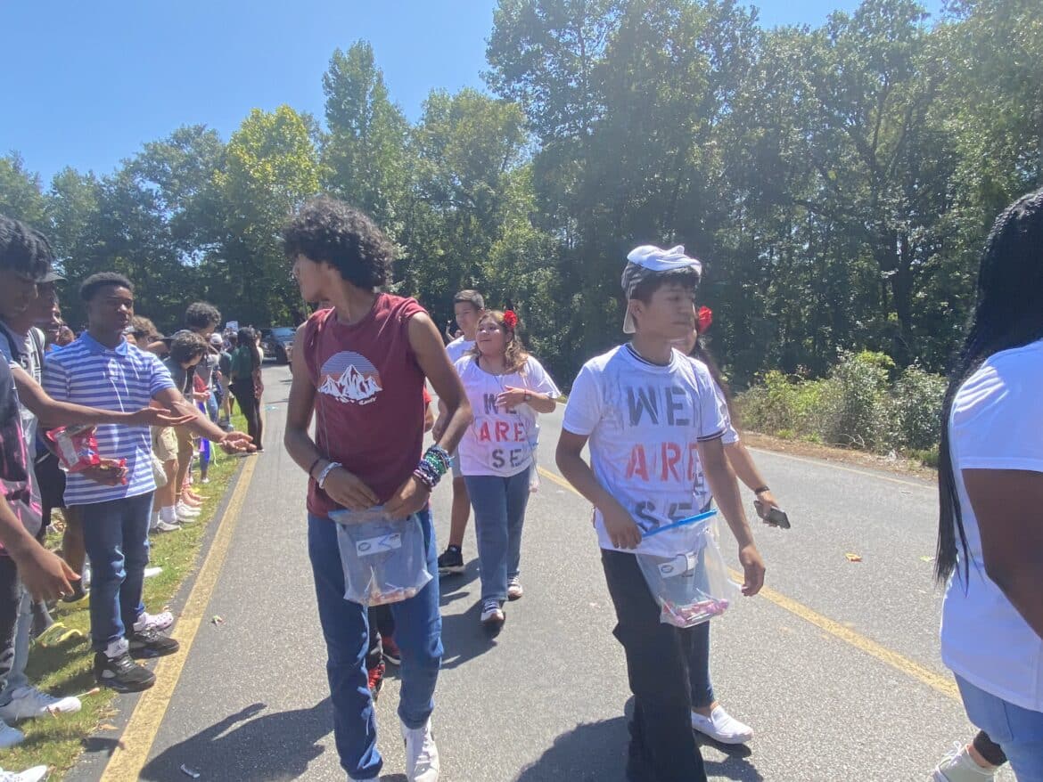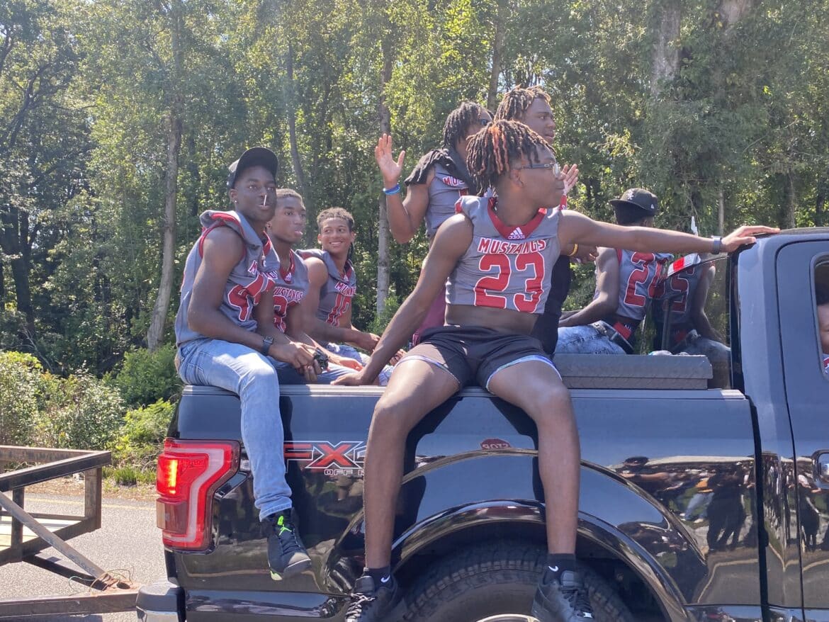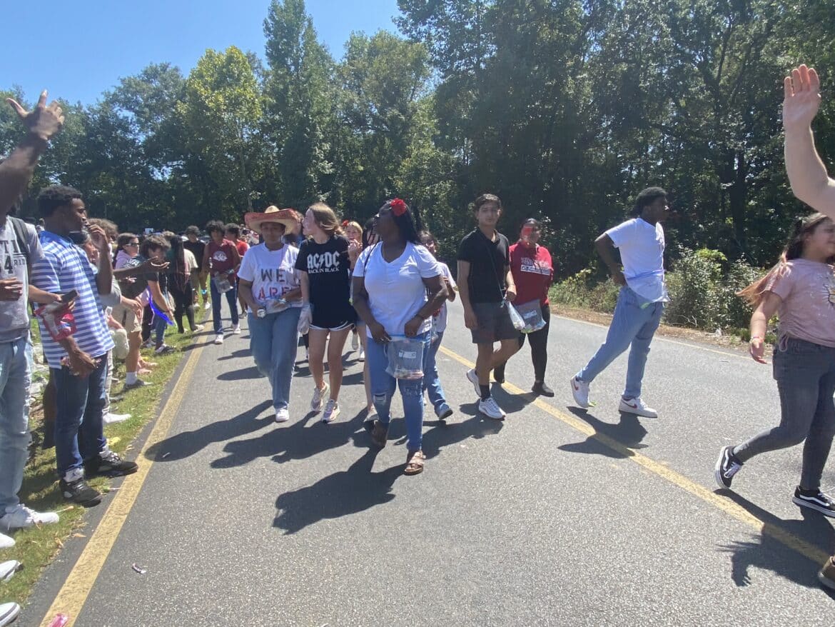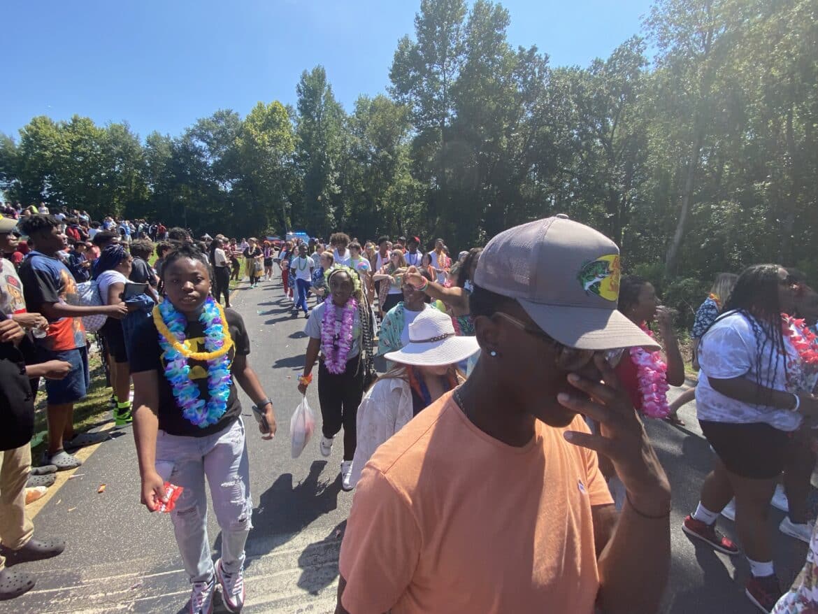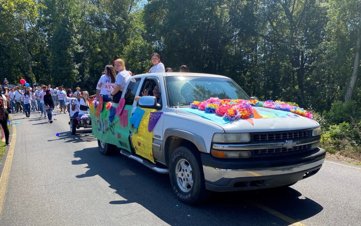 The homecoming court, cheerleaders, band members, ROTC, dance team, football players and different clubs and organizations march from the school, to Main Street, turning onto Chapman Road and paraded by Millbrook Middle School.