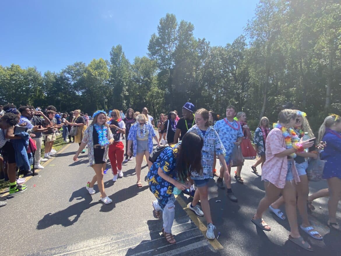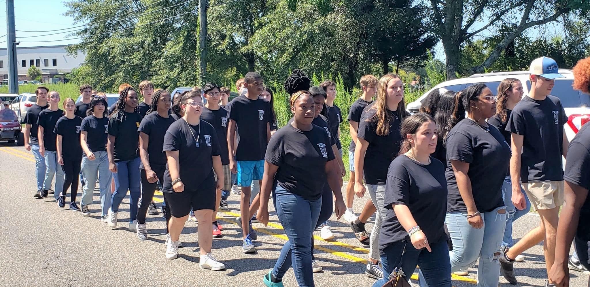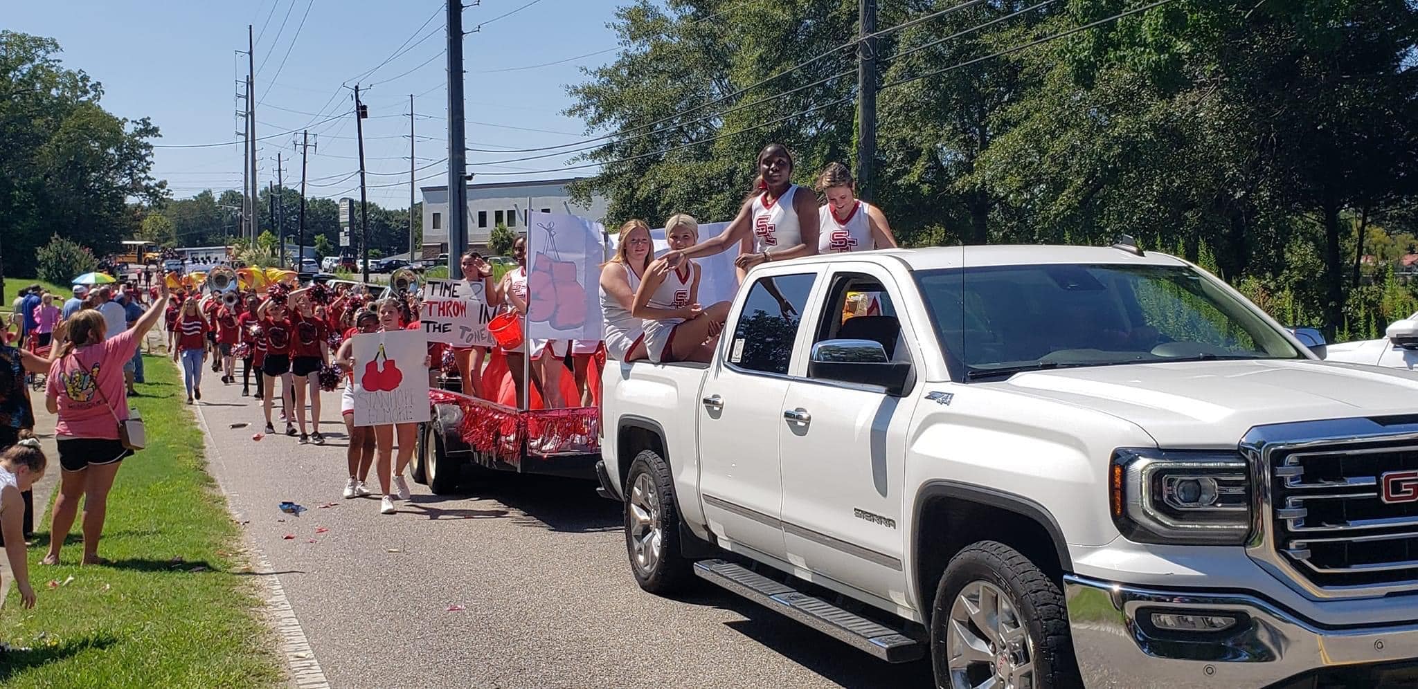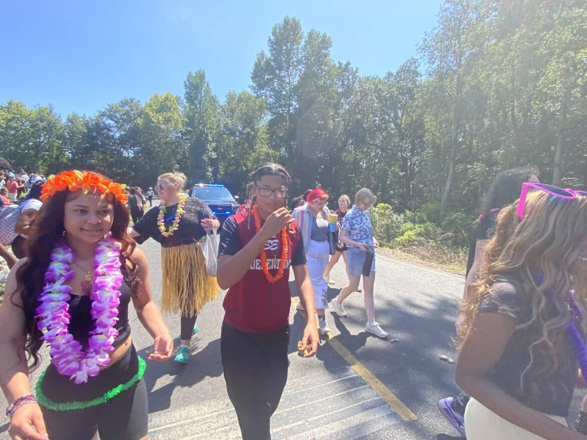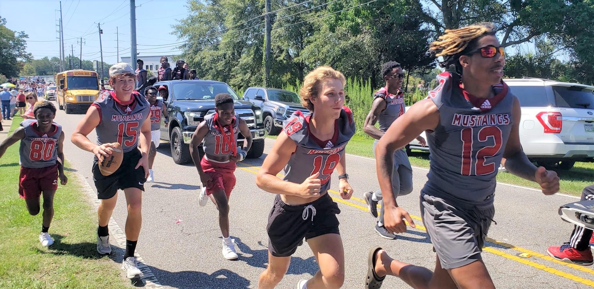 The homecoming court, cheerleaders, band members, ROTC, dance team, football players and different clubs and organizations march from the school, to Main Street, turning onto Chapman Road and paraded by Millbrook Middle School.