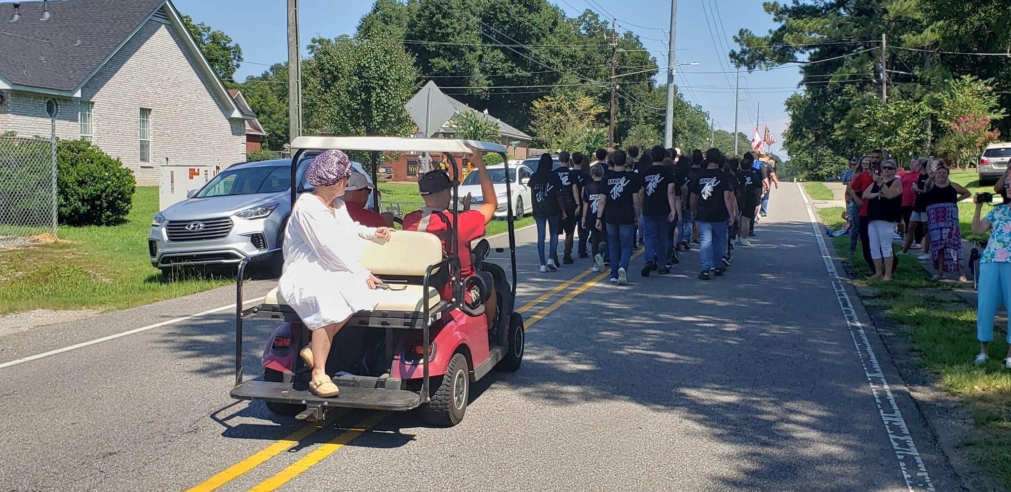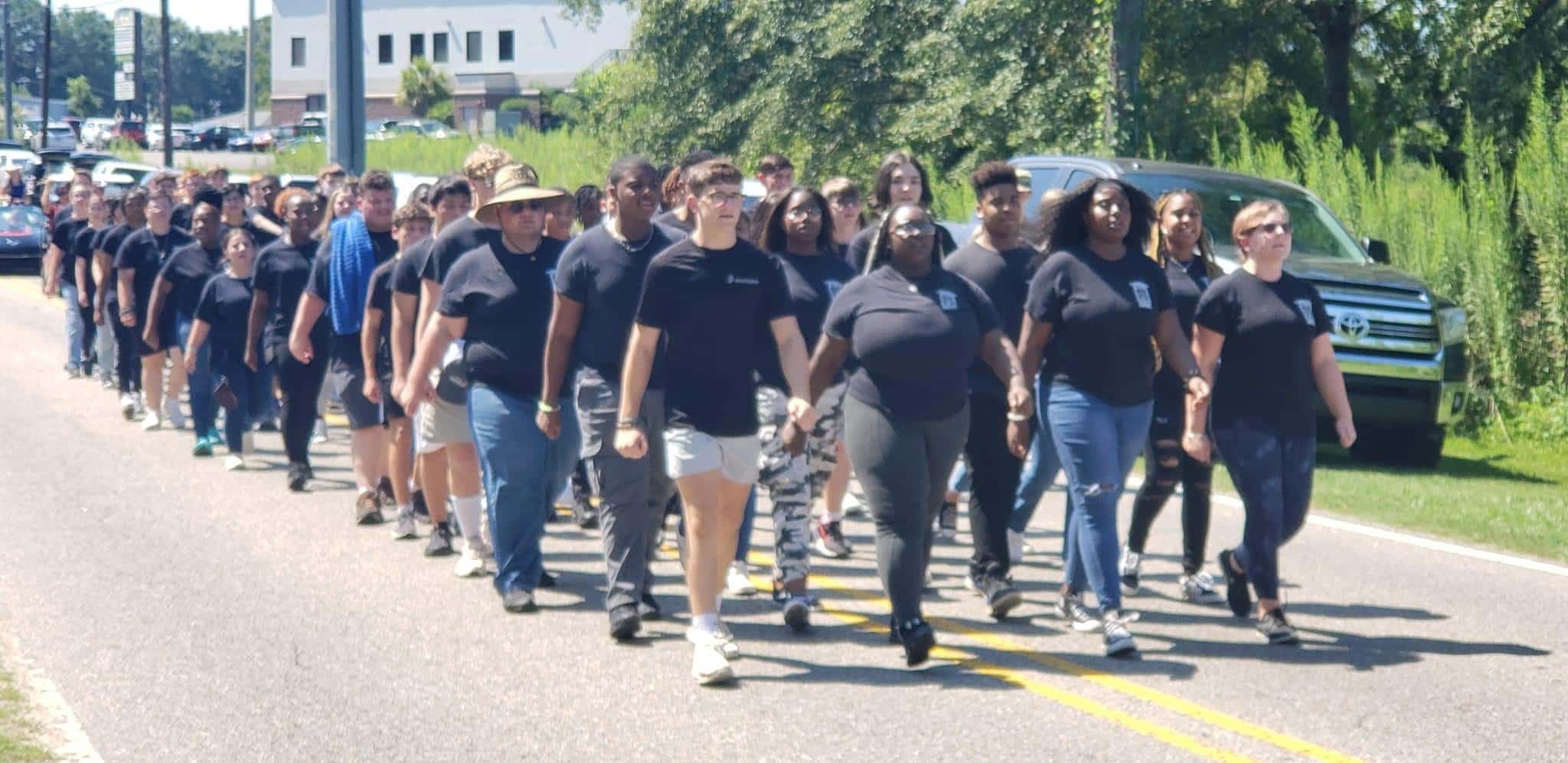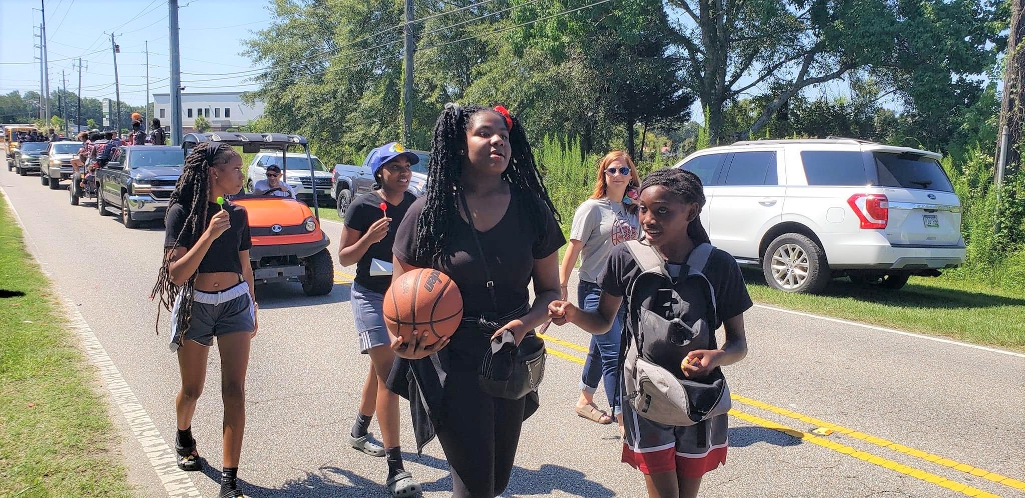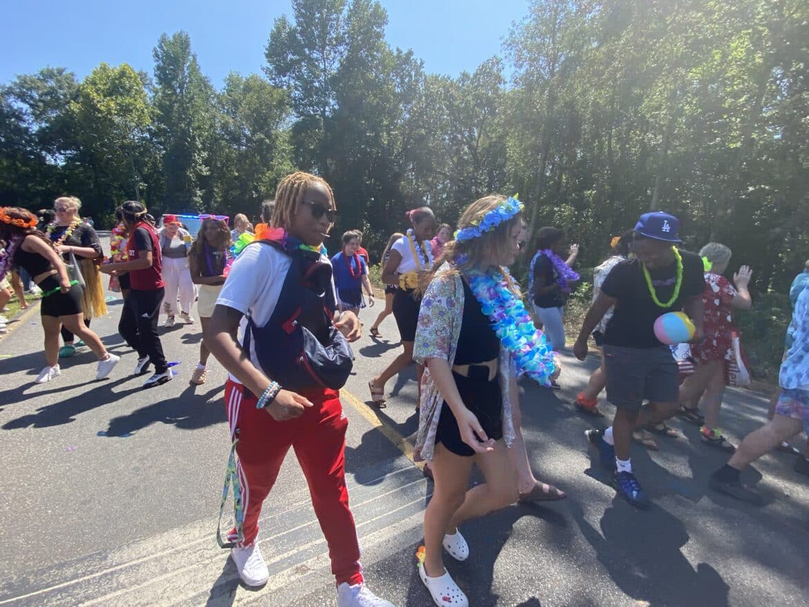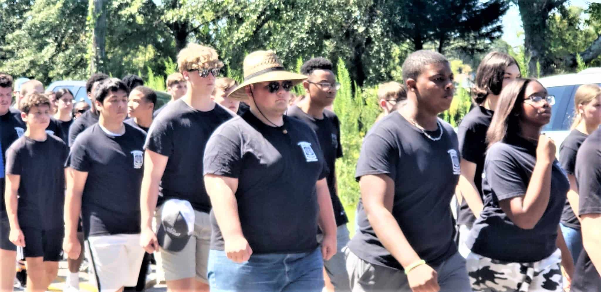 The homecoming court, cheerleaders, band members, ROTC, dance team, football players and different clubs and organizations march from the school, to Main Street, turning onto Chapman Road and paraded by Millbrook Middle School.