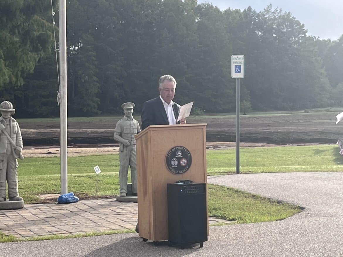 Mayor Bill Gillespie shared remarks on the tragedy of September 11, sharing that this event changed the course of history and that all would remember exactly where they were the day the Twin Towers fell. Gillespie encouraged everyone to always remember those who lost their lives and for citizens of Prattville to remain united; when you see something, say something He thanked the tireless efforts of all those who serve in the military, First Responders, and praised the work of those who hosted this beautiful ceremony.