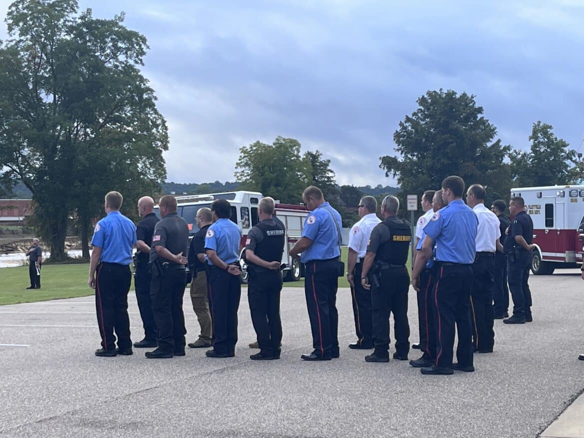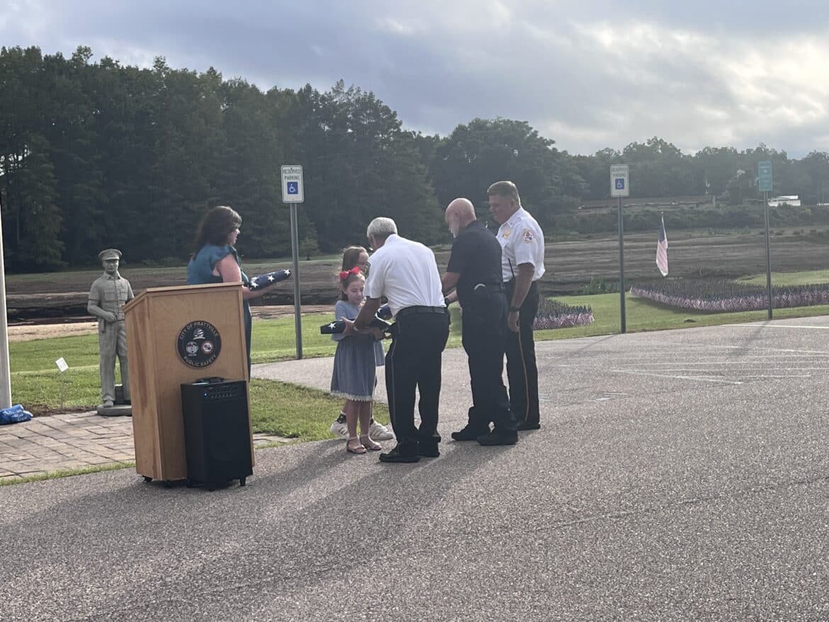 Kervin invited the children in attendance to lead the Pledge of Allegiance to a flag at half mast, and then had those same children present flags to the Chiefs of each of the city’s first responder organizations – Fire, Police, and Sheriff.