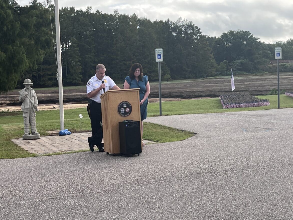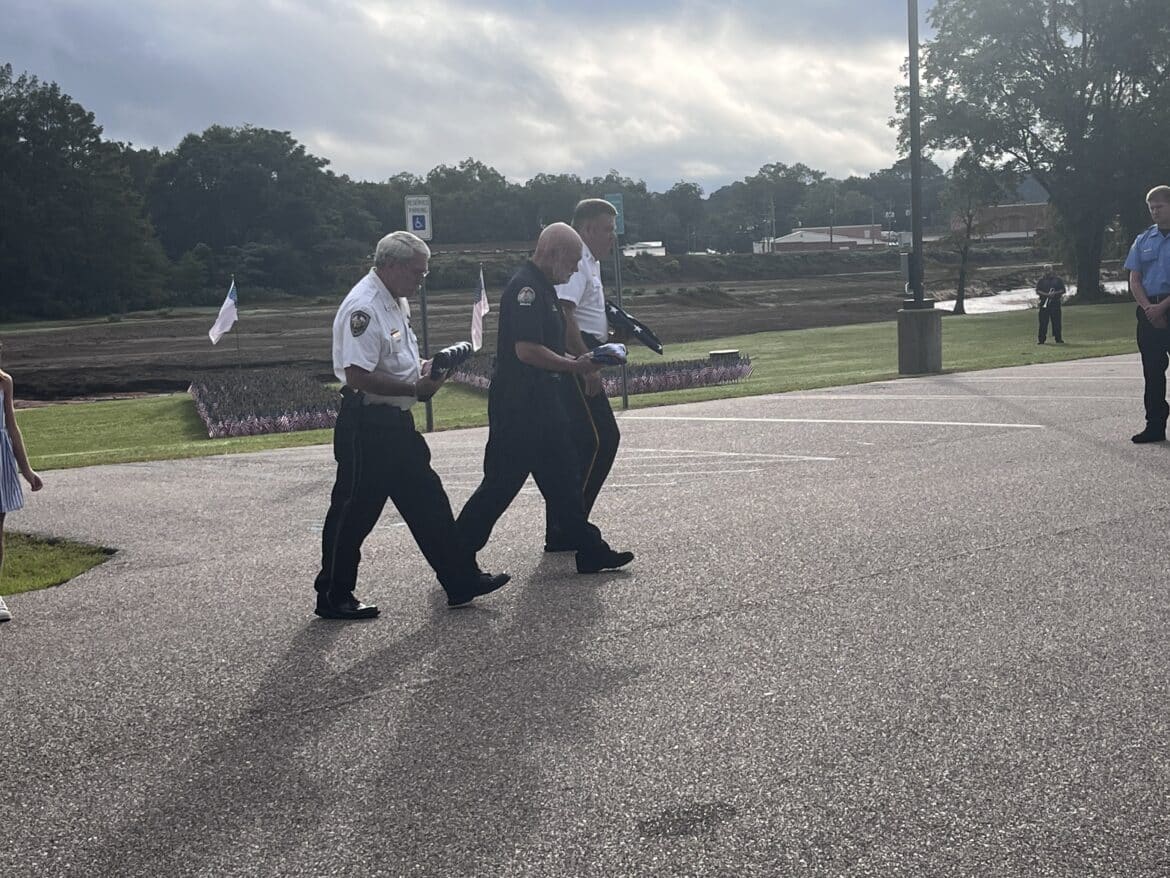 Kervin opened the ceremony by thanking those who worked hard to make the event happen and by thanking our city’s First Responders. A visual memorial of 2,977 flags were placed to symbolize the lives lost on that fateful day, 21 years ago. City Council President Lora Lee Boone presented the “Honor Flags” which were two large American Flags embossed with the names of the heroes and citizens from the 9/11 attacks.