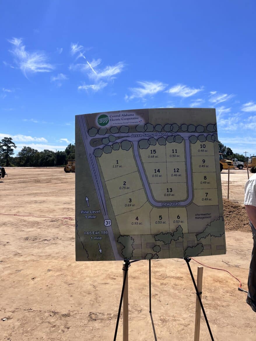 The Autauga County Industrial Development Authority, the Autauga County Commission, and the Prattville Area Chamber of Commerce hosted a groundbreaking ceremony on Tuesday, September 13, right off of Exit 186 in Autauga County. The business park site boasts 12 acres and 15 new lots for commercial and retail development in the community of Pine Level. The