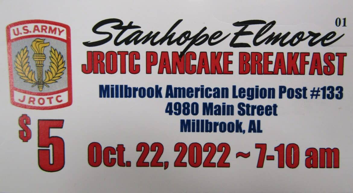 An annual Pancake Breakfast to support the Stanhope Elmore High School Army JROTC will be Oct. 22 from 7 to 10 a.m. at the American Legion, Post 133, of Millbrook.