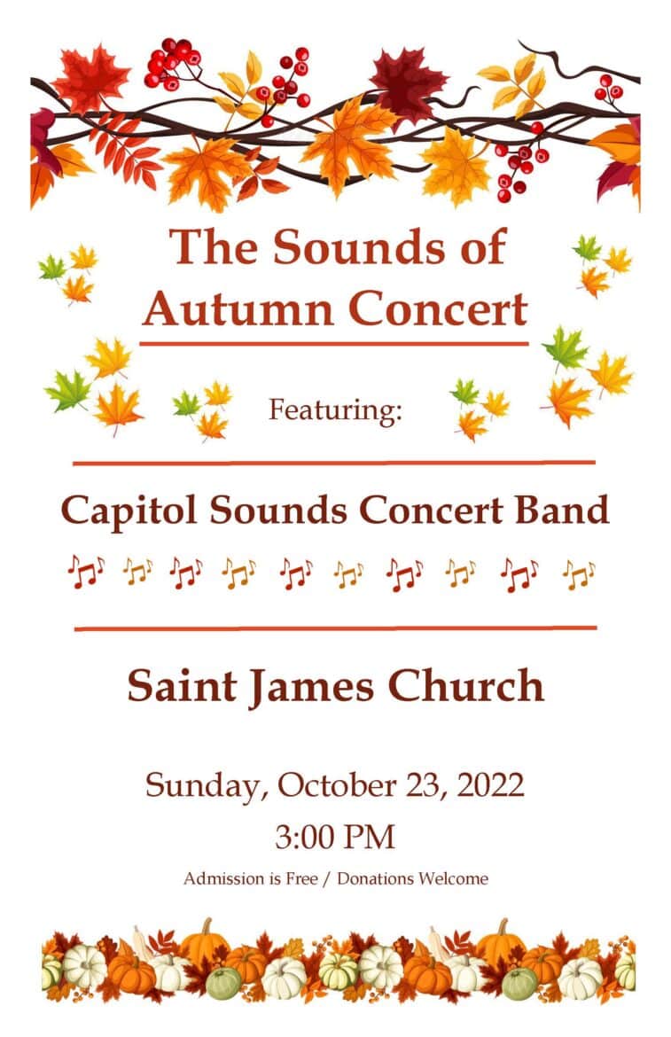 (Montgomery, Ala.) The Capitol Sounds Concert Band is celebrating their 50th Anniversary throughout 2022! The next concert will be SUNDAY, OCTOBER 23, 3:00 PM at Saint James Church, 9045 Vaughn Road, Montgomery, AL 36117.