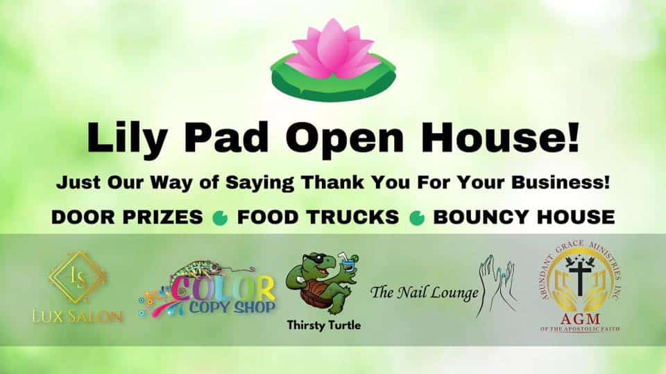 On Saturday, 15 October, join the fun starting at 4 pm at Lily Pad Place, 4852 Main St, Millbrook. This is an Open House and Customer Appreciation with proceeds being donated to our Shelter and hosted by: LUX Salon, Color Copy Shop, Thirsty Turtle, The Nail Lounge and Abundant Grace Ministries and featuring DJ LULU! There will be food truck(s), bouncy house, ballgames on all the TVs, door prizes and some fun contests. To enter the contests just bring a needs item donation for the Shelter. Raffle tickets will be sold on Saturday for the Booze wagon. Events schedule is below and the ‘after party’ will feature Jones Social Club!