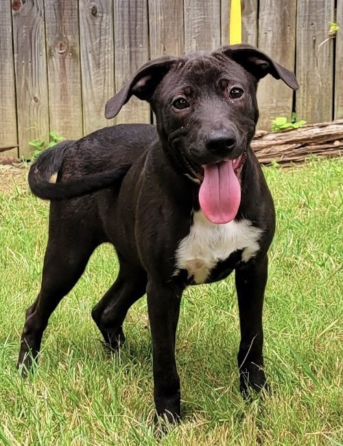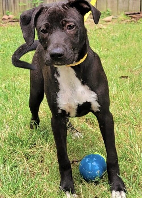 Dixie is a seven-month-old female Pit/Lab looking mix, about 45 lbs. She is super playful but not hyper, happy, loves treats, will chase a toy but hasn’t figured out the retrieve part and loves other dogs.