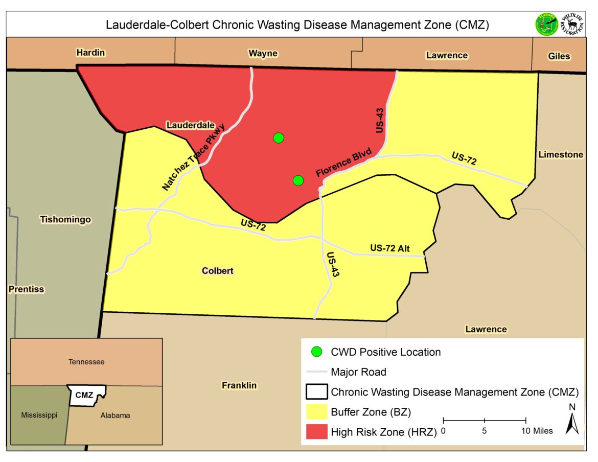 For sampling locations within the CMZ, visit www.outdooralabama.com/cwd/cwd-zone-map