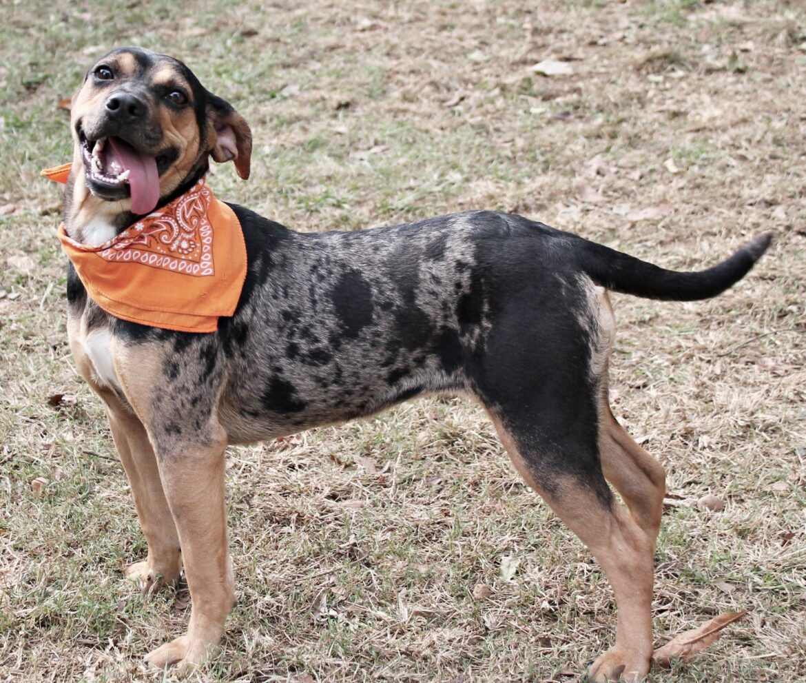 Mia is an eight-month-old, 40 lb female hound looking mix that came to us as a stray and was never reclaimed. She is incredibly sweet, great with other dogs, very playful and just a very happy girl!
