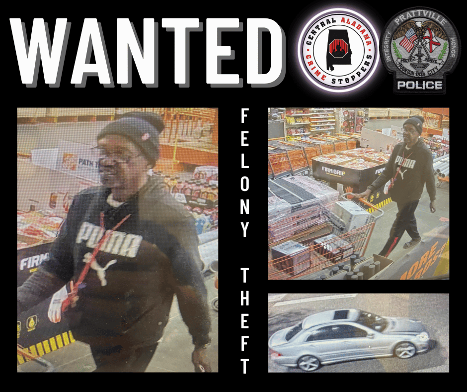 The Prattville Police Department is investigating a felony theft of property and seeks the public’s help in identifying the suspect.