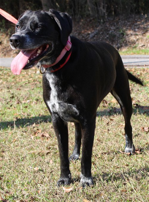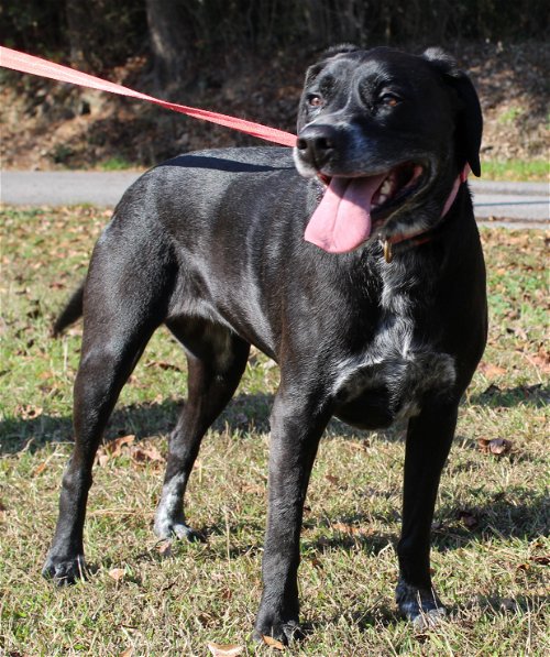 Spice is a 6-year-old female Black Lab who has already been spayed. She came to PAHS because she is not good with small dogs. Spice has a short black coat with white markings. This pretty lady weighs 68 pounds so she is a large dog. Spice is a very calm girl who walks well on a leash and is house trained. This well behaved dog is very friendly, affectionate, and sweet. She would be great in a home with children. However, Spice should not be in a home with small dogs or cats. She gets along well with dogs her own size–just not small dogs. Spice is a very nice senior lady who would truly love to be someone’s new best friend. Please consider giving this precious girl a new start with a new family.