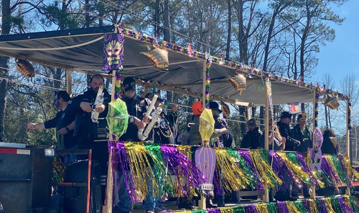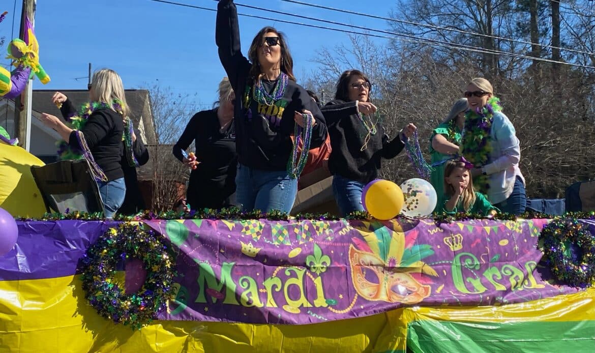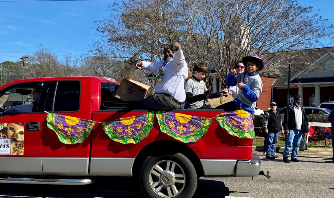 “If it wasn’t the biggest crowd we have ever had it is in the top,” Millbrook Police Chief P.K. Johnson said.” He led the parade toting his grandbabies who had their parade wave down, and tossed every bead they had by the end of the parade.