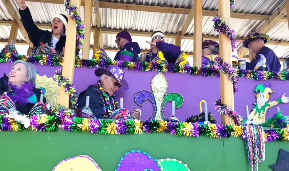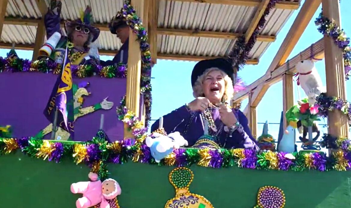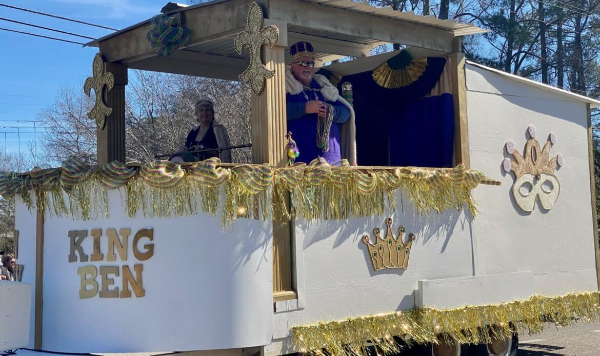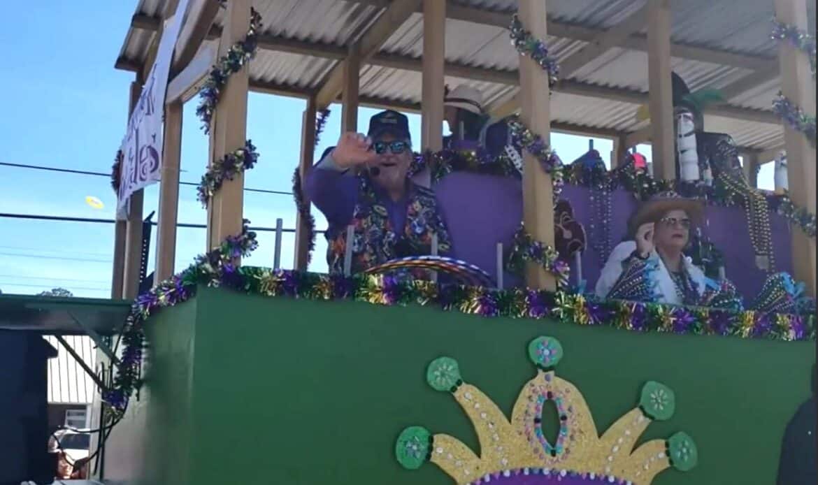 This year’s Millbrook Revelers Mardi Gras King Ben Robbins, and Queen Shirley Hasse, were in perfect royal form as they joined the procession and parade this afternoon to thousands upon thousands of revelers trying to catch some “throws” along Main Street.