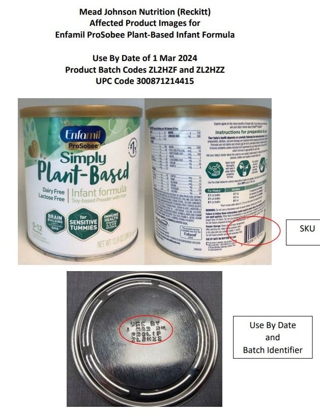 Mead Johnson Nutrition has issued a voluntary recall of a small amount of Enfamil ProSobee 12.9 oz. Simply Plant-Based Infant Formula manufactured by Reckitt due to a possible health risk.