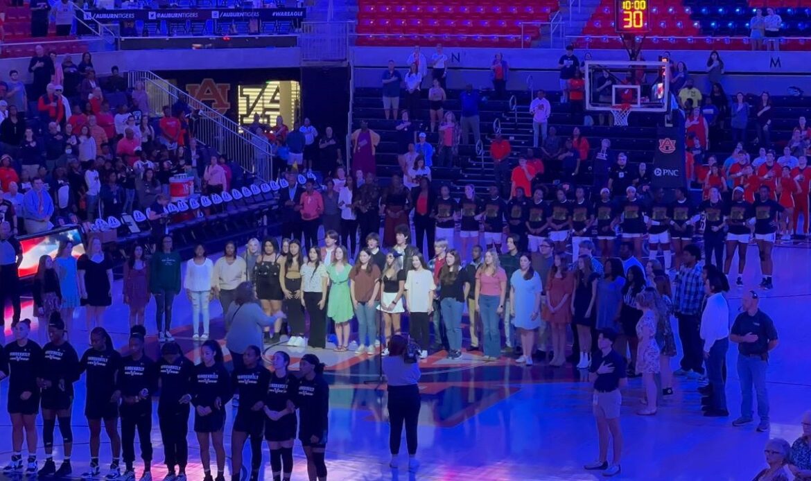 The Tallassee High School 7th Period Concert Choir, under the direction of Mrs. Kelley Hill, performed the “Star-Spangled Banner” at the Auburn vs. Vanderbilt basketball game Sunday, February 26 at Neville Arena. Auburn won the game 78-76.