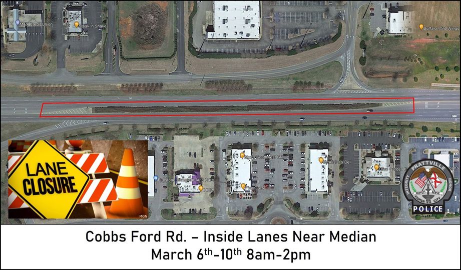 LANE CLOSURE – COBBS FORD RD. 🚧