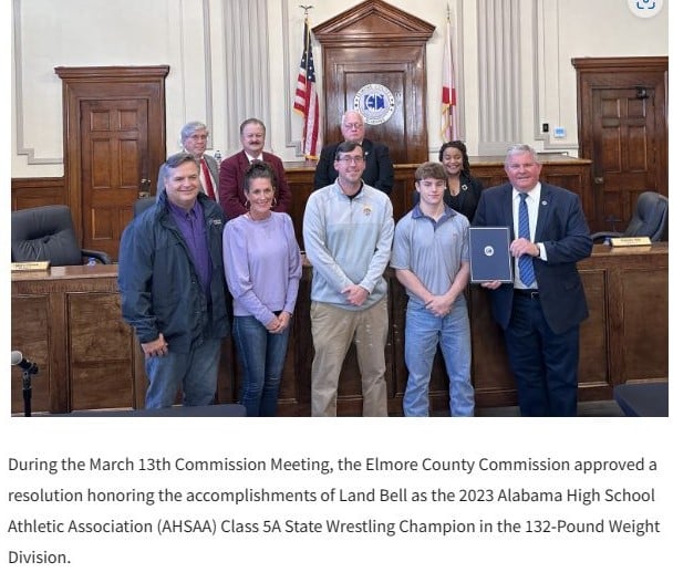 Elmore Commission Honors Wrestler Land Bell of Tallassee High School
