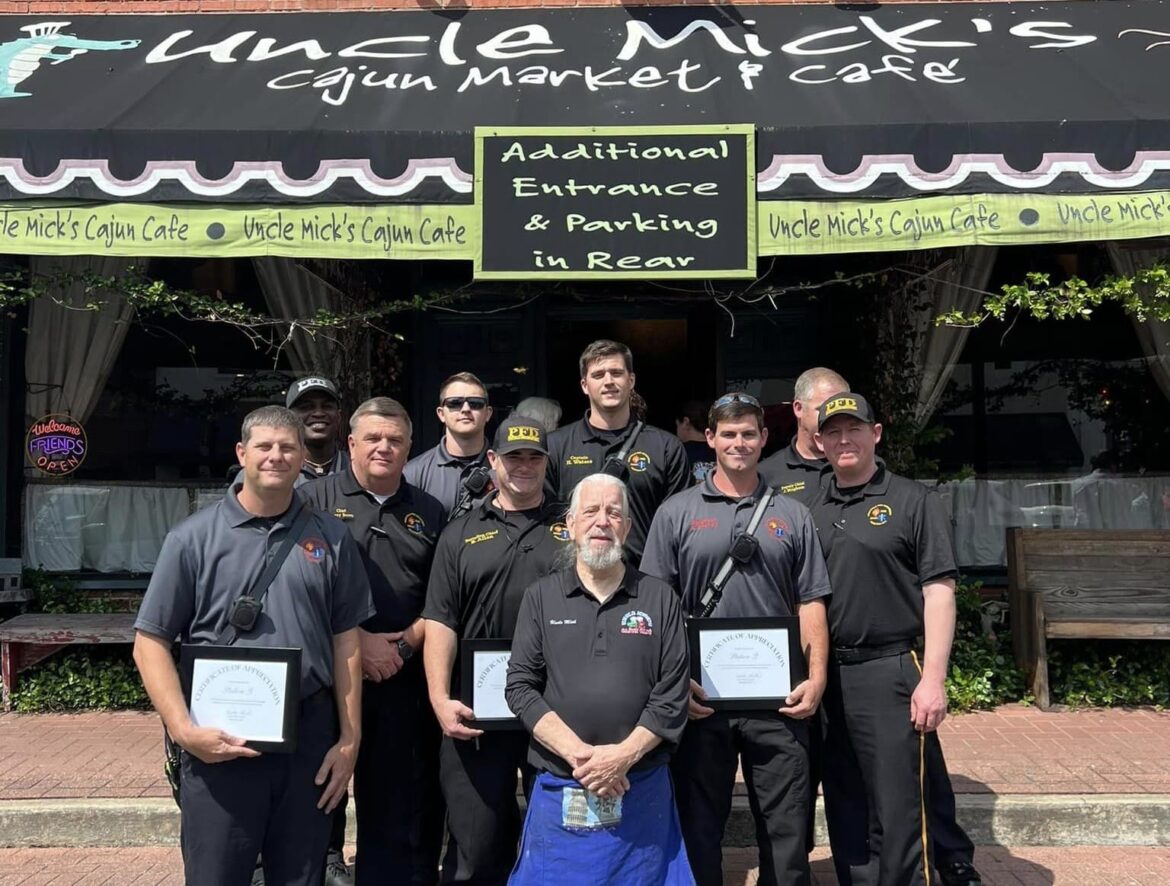 We were honored today to attend Uncle Mick’s Cajun Market Cafe ribbon cutting event for their reopening ceremony. Thank you to Uncle Mick and his staff for the hospitality. We are grateful to welcome them back to the community. The fire at Uncle Mick’s occurred on August 18, 2022. Stations 2 initially responded for a smoke investigation following a report from patrons of a “popping” sound coming from the business. Engine 2 arrived shortly after and reported heavy smoke from the building, issuing a second alarm. Stations 1, 3, and 4 also responded to the incident. Welcome back Uncle Mick and staff.