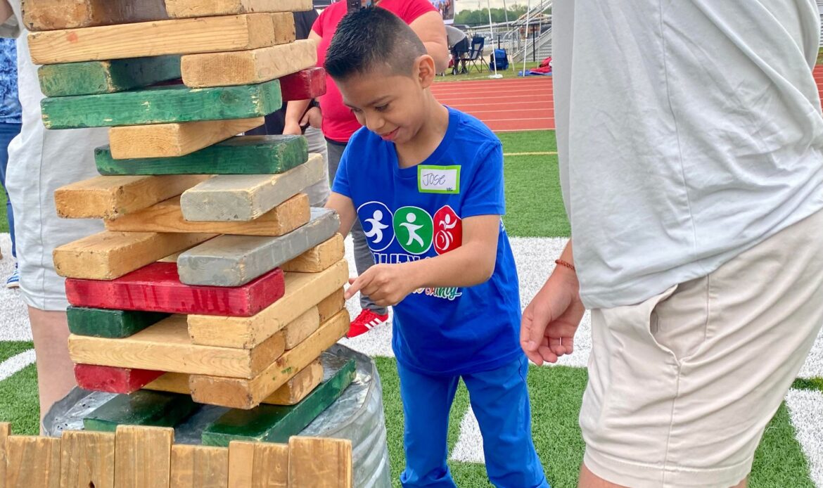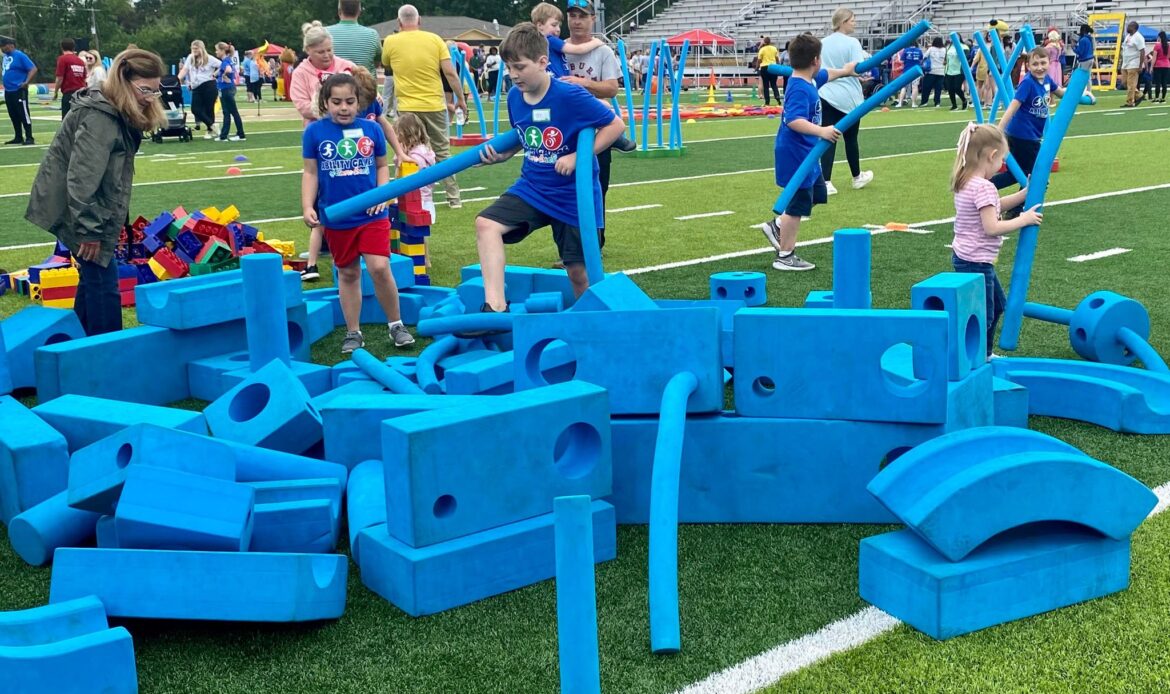 There were 18 different stations for the children to enjoy. They included parachute play, foot darts, ZIP IT, frisbee, fitness, wacky 5-N-1, football, corn hole, music time, pictures, sports arena combo, hoop mania, soft play, stacking, jumping/bouncing, seven-element course, big games, and launch it. Maurice Wood with Carousel Music provided music for the event.