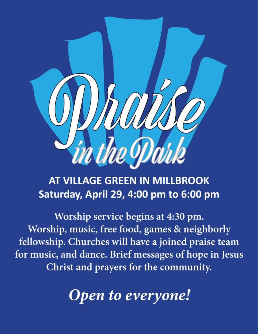 Everyone is invited out to Village Green Park of Millbrook May 13 from 4 to 6 p.m. for Praise in the Park.