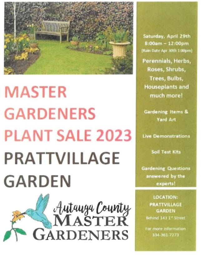 PRATTVILLE, Ala.—The Autauga County Master Gardeners are holding their annual plant sale on Saturday, April 29 from 8 a.m. to Noon at the Prattvillage Garden.