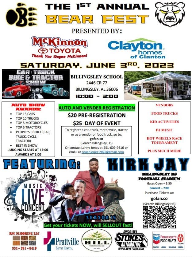 Billingsley High to host Bear Fest June 3 with Music, Auto Show and Vendors