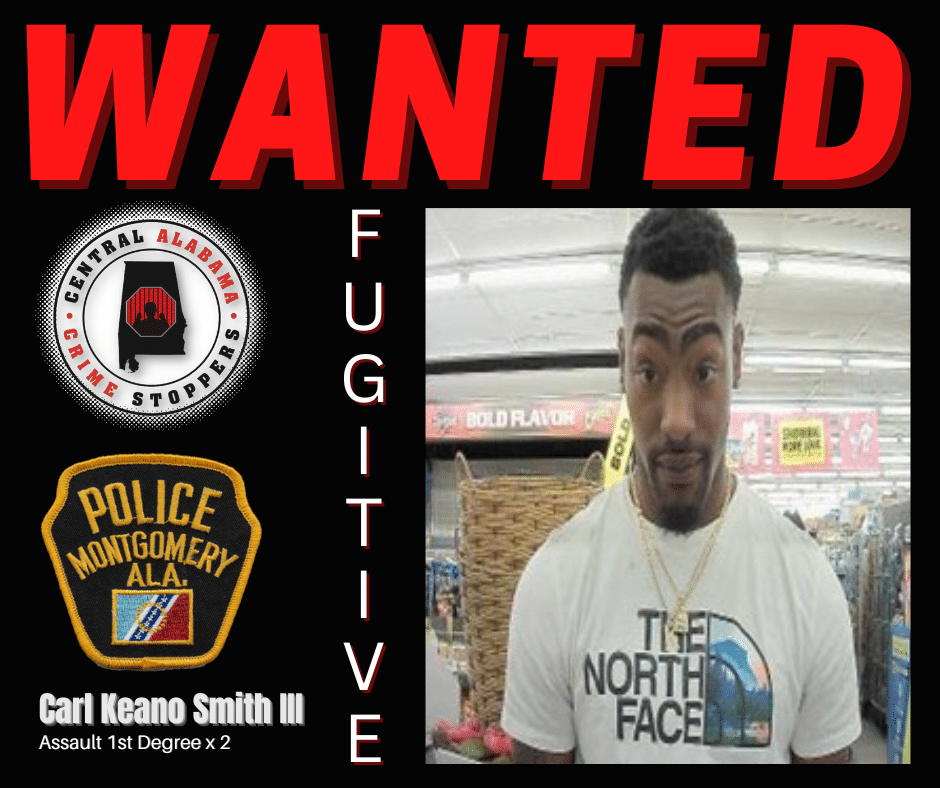 Smith is currently wanted for discharging a firearm into an occupied vehicle and two counts of assault 1st degree with the Montgomery Police Department.