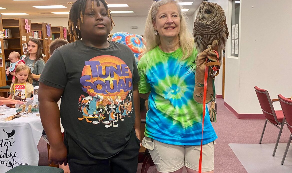 “We had a lovely turnout for the Raptor program,” said Angie Dewberry, assistant director and children’s Librarian. She continued, “The children were both educated and enthralled by the information shared about local avian wildlife. We are so appreciative to Ms. Valerie for sharing her knowledge and experience. This program is just awesome.”