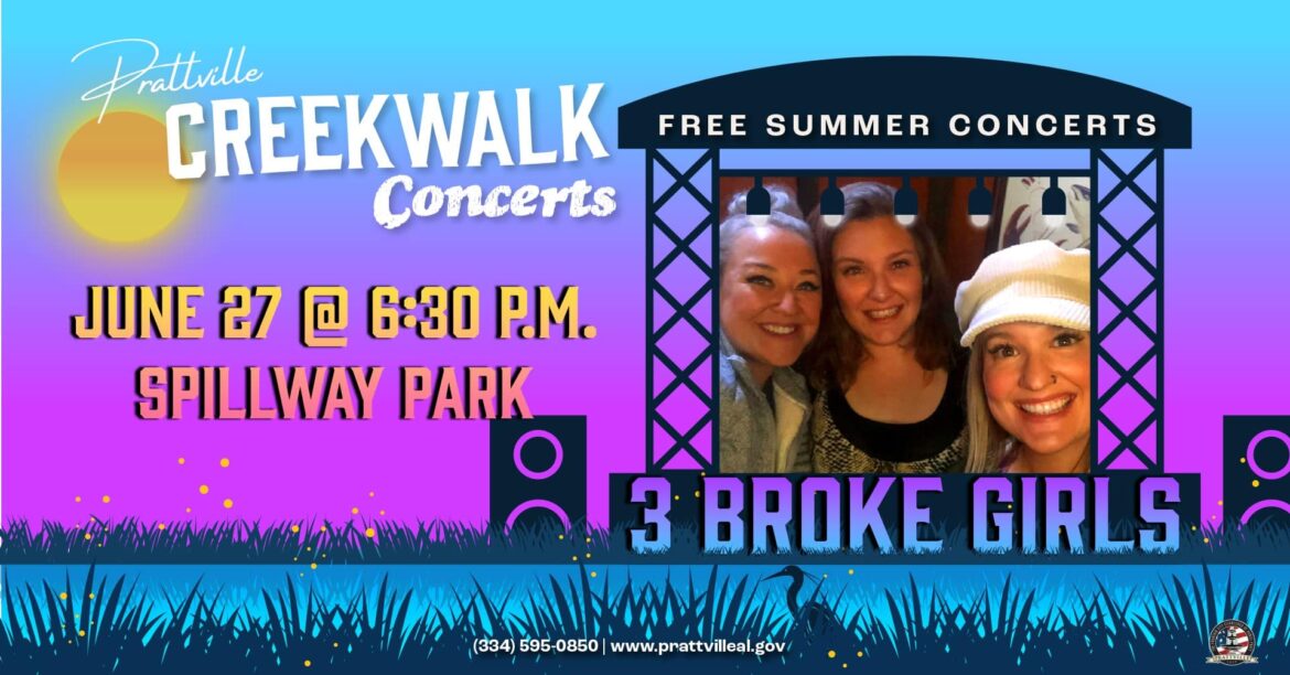 Tonight’s performers are 3 Broke Girls. They do all genres – country, rock, hip hop, R&B, and even gospel The concert starts at 6:30 pm and there will be food vendors on site, so bring a blanket and your friends to Spillway Park.
