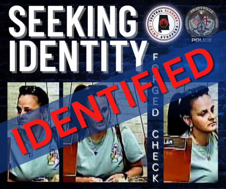 The Prattville Police Department notified Central Alabama CrimeStoppers and advised they have identified the suspect involved in a Criminal Possession of a Forged Instrument investigation.