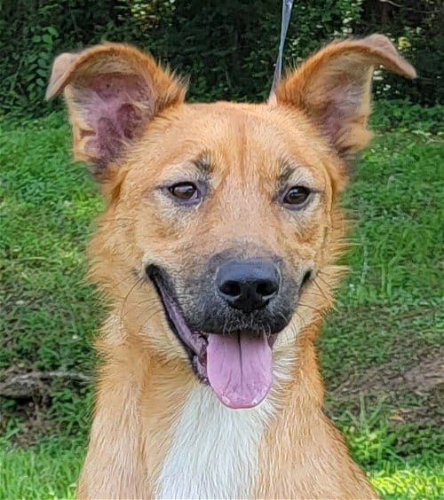 Pongo is 17 months old, female Lab/Shep mix, about 50 lbs. She is a wonderful dog, playful & loving, great with children, other dogs & cats, may be housetrained. Pongo says – get me outta here and into a loving home!