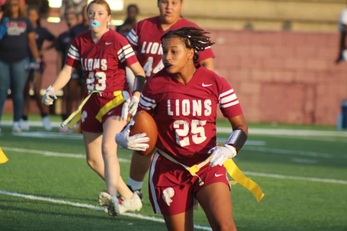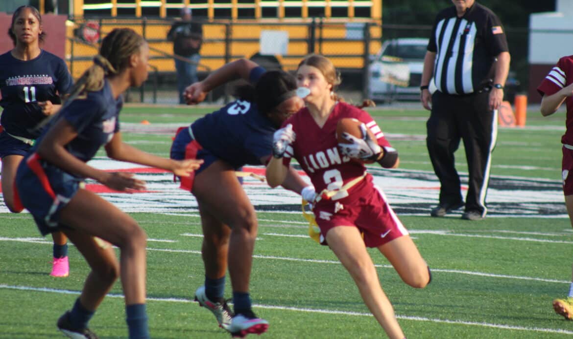 The Prattville Lions Flag Football team hosted the Park Crossing Thunderbirds at Stanley Jensen Stadium on Wednesday night in an area matchup. Starting quarterback Kaytie Chandler was held out of the game due to a minor injury, but the Lions’ offense was still too much for Park Crossing, who was playing the school’s first-ever flag football game. The Lions coasted for a 50-6 win.