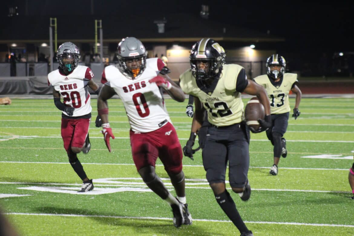 On the Mustangs’ side, running back Arthur McQueen likewise had a historic night in the county’s biggest rivalry game, accounting for 350 total yards. McQueen rushed for 220 yards and 2 touchdowns. He also had 7 receptions for 120 yards.