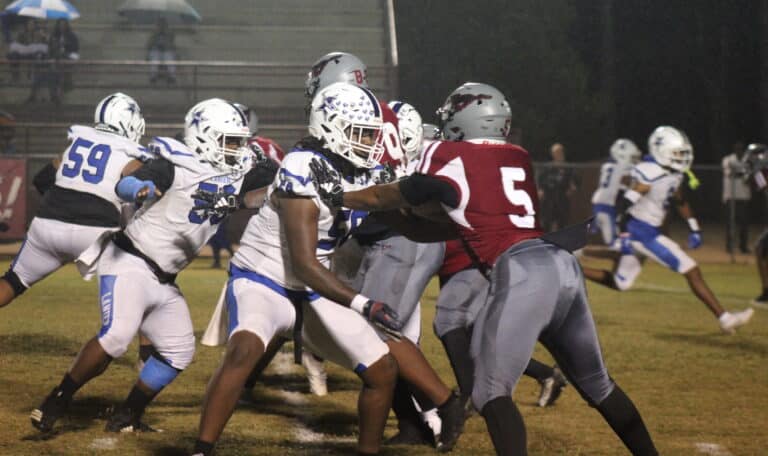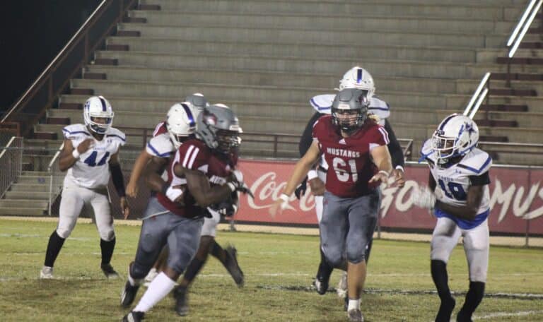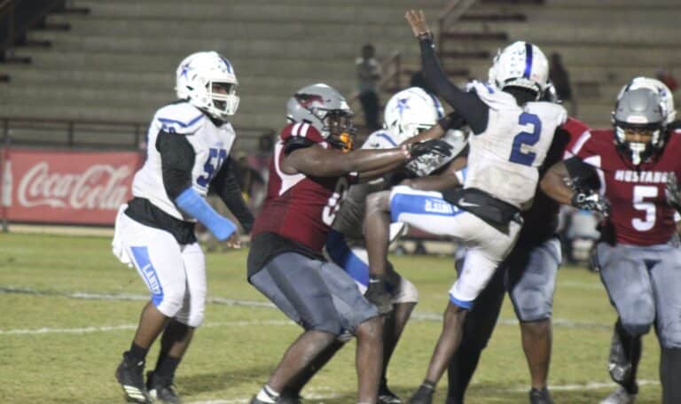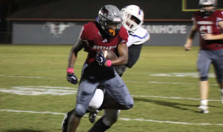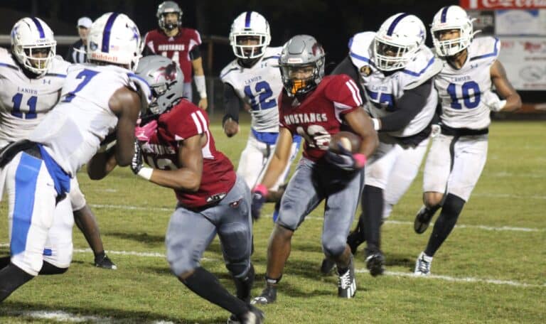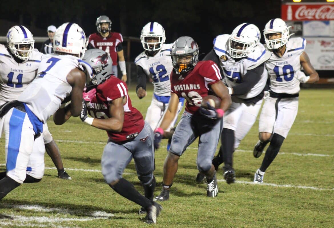 Lanier got the ball first in the 2nd half and drove deep into Mustangs’ territory but was unable to score. The Mustangs answered with quarterback Jacob Bryant completing a 52-yard pass, and McQueen scoring from 4 yards out.