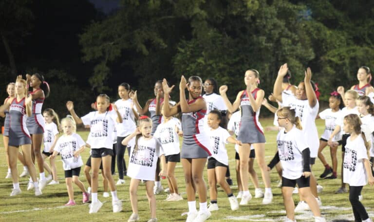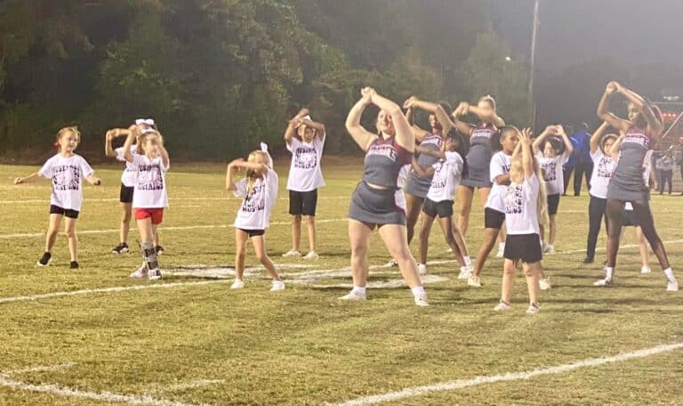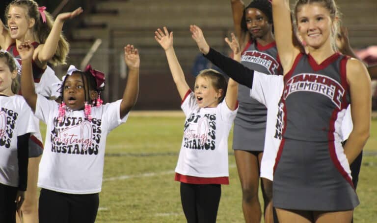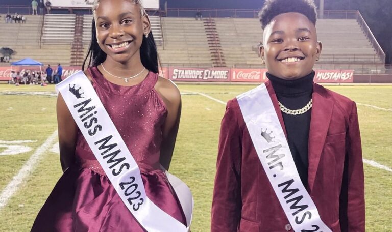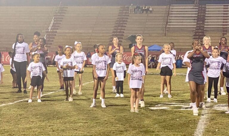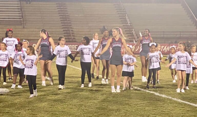 Also Friday night, participants of a recent cheerleading clinic were honored before the game and helped cheer for the Mustangs. Mr. and Ms. Millbrook Middle School Trevon Spencer Jr and Zoe Autrey were recognized as well as Mr. and Ms. Millbrook Junior High School Kuraji Crosby and Sam Floyd.