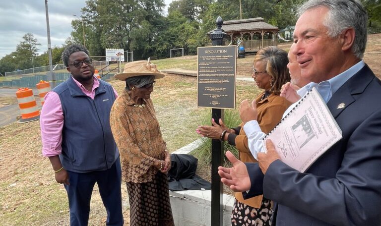 Several of Prattville’s residents and city officials gathered Thursday afternoon to celebrate the dedication of the North Highland Park pavilion in honor of Mary Virginia Harris.