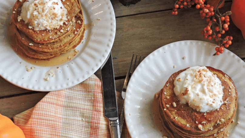 Fluffy No Added Sugar Pumpkin Pancakes