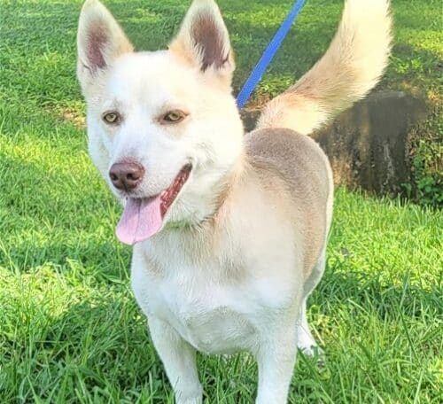 Waylon is a five-year old Husky/Corgi mix, male, about 45lbs and too cute with his Husky head and short stubby legs. Waylon is good with other dogs but brought to us for having a high prey drive where other type animals are concerned – cats, livestock. For another dog let’s stick with dogs his size and larger to be safe. He is a happy fella, very strong and fast. Loves people!