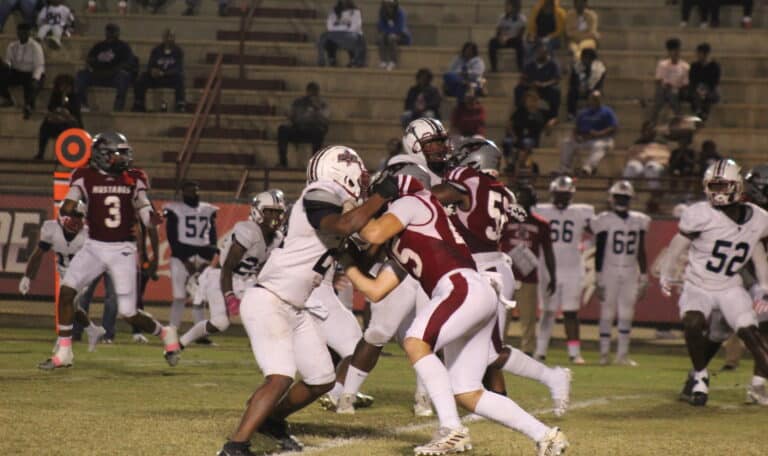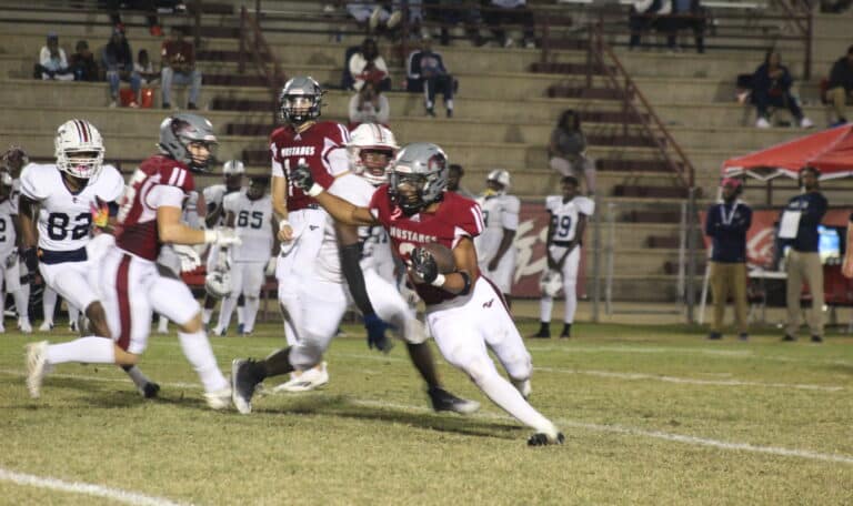 It didn’t matter. A few plays later, defensive back Randy Martin had an interception returned for a touchdown. The next Park Crossing possession, DeShaun Caffee had an interception for the Mustangs, but they weren’t able to convert the second turnover into points.