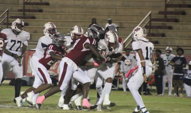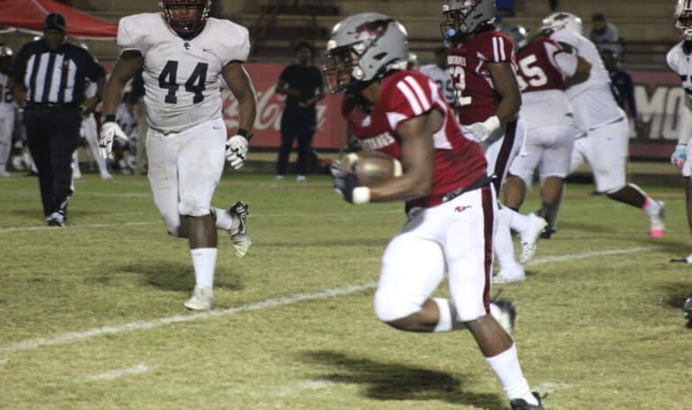 On Park Crossing’s next drive, Mustangs defensive end Thomas Williams had a tackle for loss on 1st down, and linebacker CJ Jackson had a tackle for loss on 3rd down, forcing a punt. The Mustangs took over the next possession at the Thunderbirds’ 27-yard line. A few plays later, McQueen scored his second touchdown of the night on a 1-yard plunge.